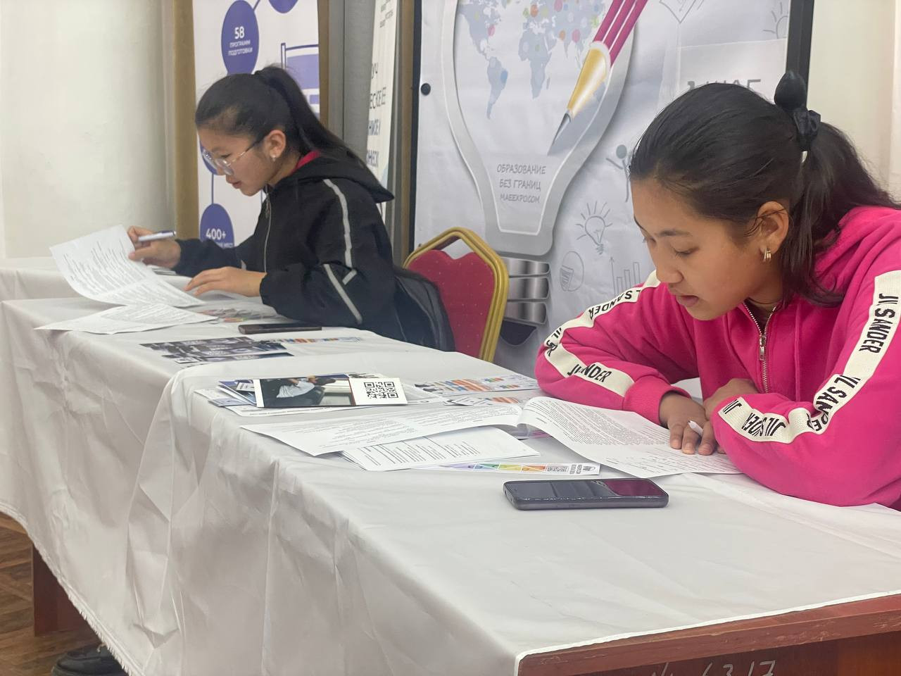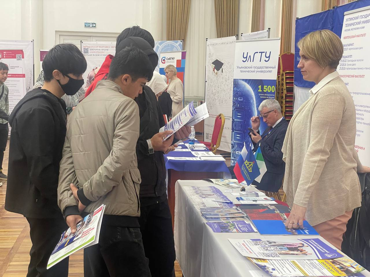 Жарманкеде мектеп бүтүрүүчүлөрү, студенттер жогорку окуу жайлардын билим берүү тармагындагы техникалык, гуманитардык, агрардык, медициналык жана башка багыттары, билим алууга түзүлгөн шарттары, жумуш орундары жана стажировкадан өтүү мүмкүнчүлүктөрү жөнүндө маалымат алып жатышат. Каалоочулар ЖОЖдордун экспресс-тестирлөөсүнөн өтүшүүдө.