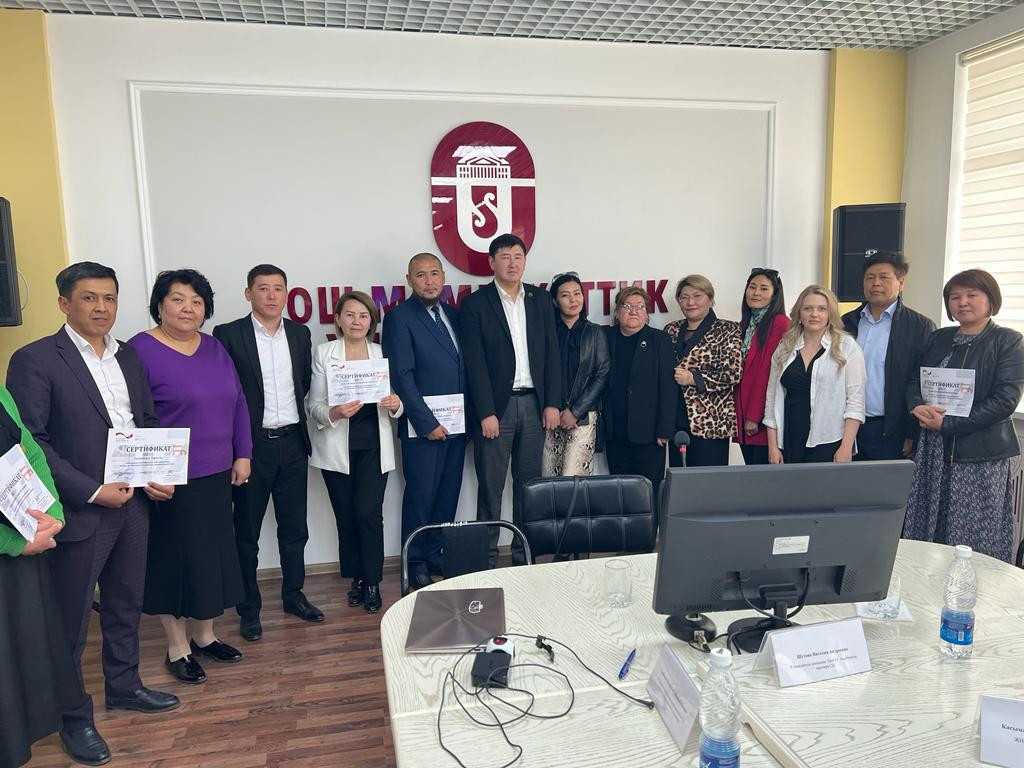 Бизнес жана менеджмент факультети , GIZ уюму , Ош шаардык социалдык камсыздоо бөлүмү жана Дефцит компаниясынын ортосундагы долбоордун алкагында Ош облусунда жашаган социалдык жактан аз камсыз болгон 20 жаран бизнес баштоо жана ишкердүүлүктү өнүктүрүү боюнча окутуудан өтүп, сертификат алышты.