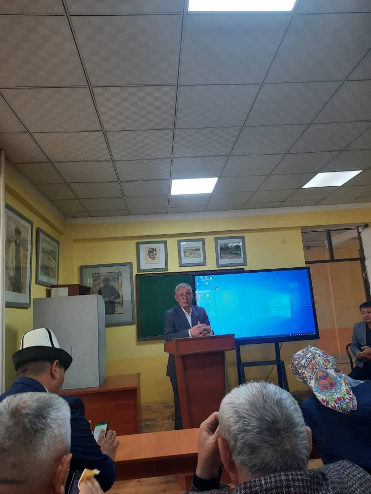 Шайлоону уюштуруу комитетинин төрагасы, ОшМУнун окуу иштери боюнча проректору Замирбек Божонов декандык кызматка шайланган доцент Жеңиш Мойдуновго ийгилик каалап, аксакалдар ак батасын беришти.