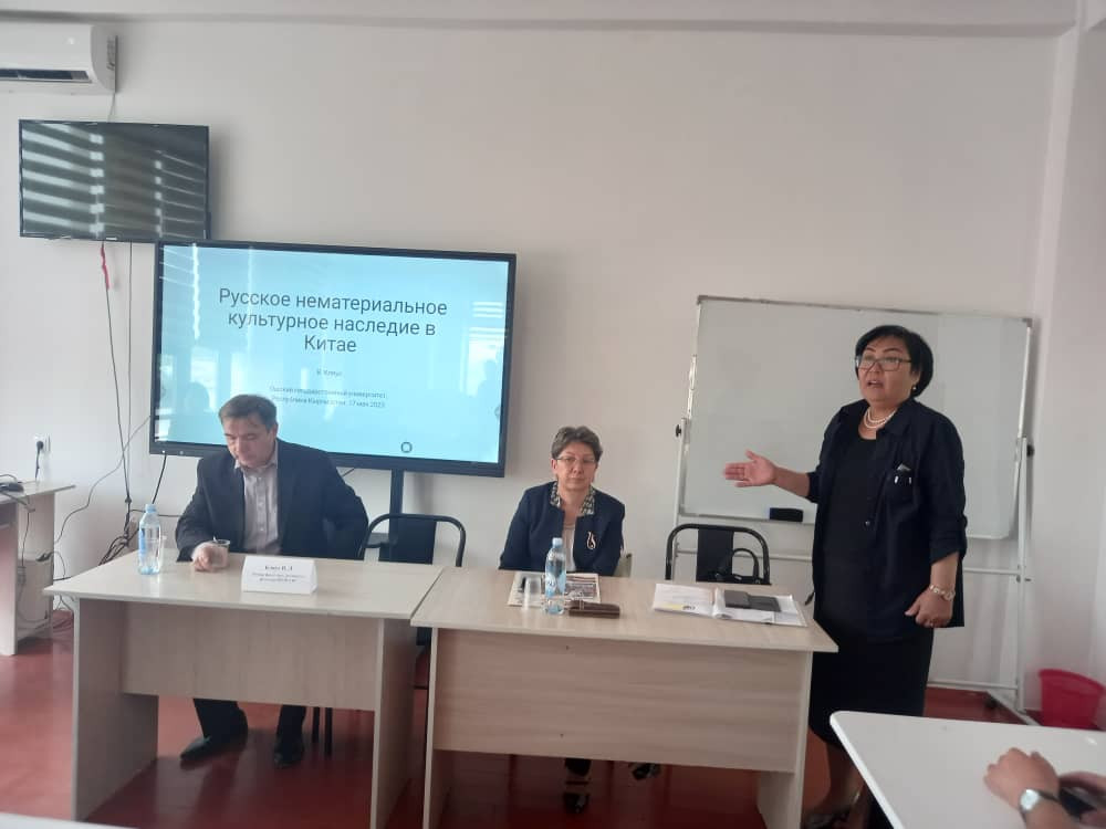 Бүгүн, 17-майда Эл аралык билим берүү программаларынын жогорку мектебинде орусиялык окумуштуу, филология илимдеринин доктору, профессор Владимир Кляус “Кытайдагы орусиялык материалдык эмес мурастар” деген темада конок лекция өттү. Лекцияга кыргыз, орус филологиясы, тарых жана коомдук иш факультеттеринин профессордук-окутуучулук курамы, аспиранттар, магистранттар жана студенттер катышты.