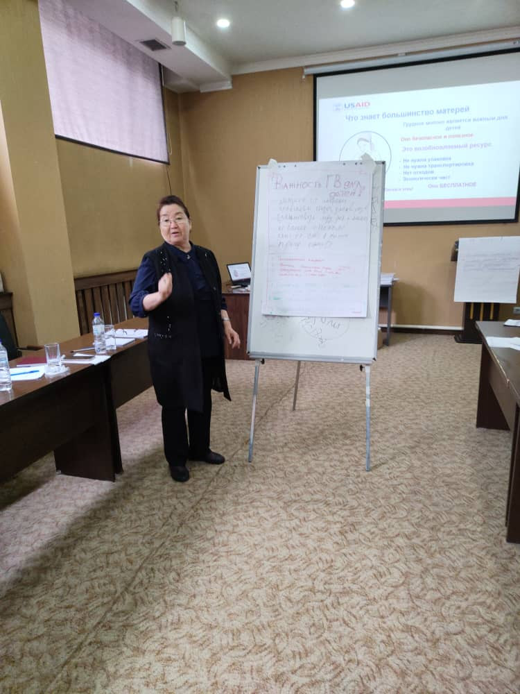 “Биз алты айга чейин бир гана эне сүтү менен гана тамактандырышыбыз керек. Бирок бул көрсөткүч өлкөбүздү 46% түзүп жатат. Көбүнчө энелер эрте кошумча тамактандырып башташат, мигранттардын балдары көбөйүп жатат. Бүгүн бизге бир гана сапаттуу тамактануу жөнүндө гана эмес тамактануу менен балага болгон камкордук сыяктуу өзгөчө актуалдуу темалар берилип жатат. Андан сырткары энелердин аз кандуулугунун себептери эмнеге алып келет. Кемтик оору балдардын төрөлүшүнүн көбөйүшү эмнеден улам болуп жатат деген темалар семинардын алкагында айтылат. Семинарга катышып жаткан окутуучулар бул билимдерди 3-курстан баштап студенттерге жаңы маалыматтар менен жеткирүүнү колго алабыз”, -деди педиатрия кафедрасынын башчысы Замира Нуруева.