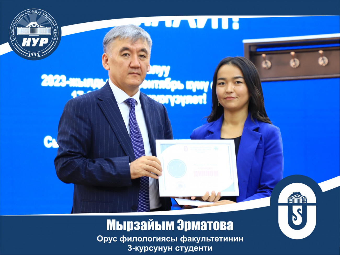1-орунду кыргыз филологиясы жана журналистика факультетинин студенти Бакберген Расулжан уулу (5миң сом), 2-орунду орус филологиясы факультетинин студенти Мырзайым Эрматова (3миң сом), 3-орунду математика жана информациялык технологиялар факультетинин студенти Гүлзар Максытали кызы (2миң сом) ээ болду .