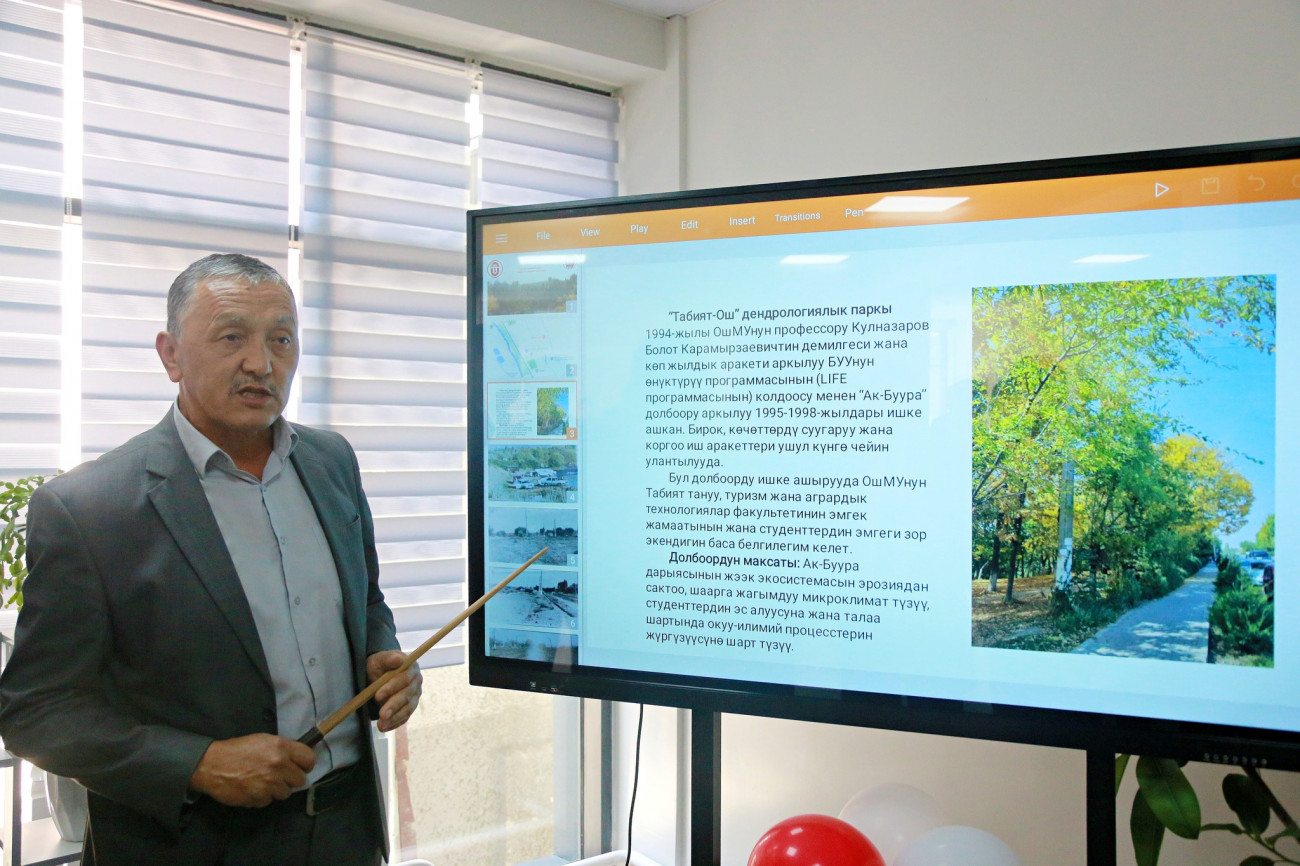 “Ош шаарынын күнүн утурлай ОшМУда эки жаны окуу корпусун пайдаланууга берип жатабыз. Окуу жай билим, тарбия гана бербестен Ош шаарын көрктөндүрүүдө, жашылдандырууда, социалдык жактан өнүгүүсүндө да салым кошушу зарыл. Бул багытта окуу-өндүрүштүк, медициналык клиникаларыбыз аркылуу шаар тургундарына кызмат көрсөтүп келебиз. Жаңыдан пайдаланууга берилип жаткан ветеринардык клиникабыз шаар тургундары үчүн да ветеринардык оорукана катары кызмат көрсөтүүсүнө шарттарды жаратып жатабыз“,- деди ректор Кудайберди Кожобеков.