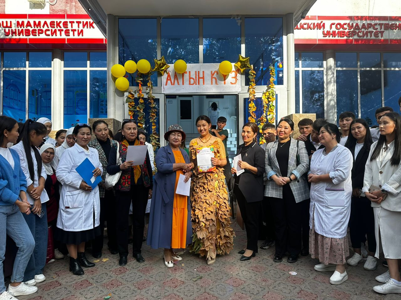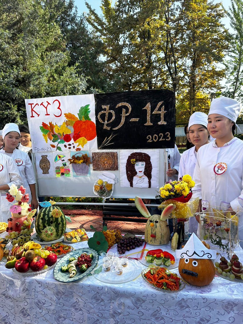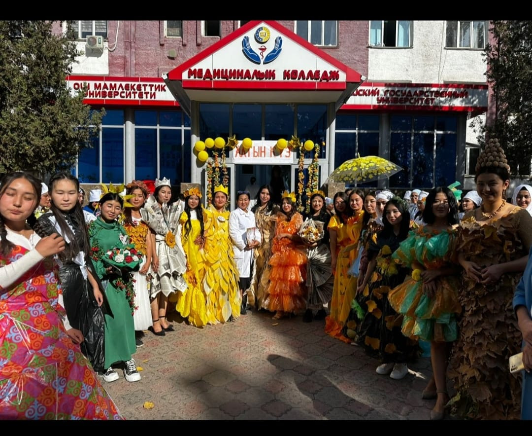 Медициналык колледжде студенттик тайпалар арасында "Алтын күз" майрамы өткөрүлдү. Майрамдык иш-чарада бардык тайпалардагы студенттер мөмө-жемиштерден өздөрү чыгармачылык менен жасаган эмгектерин көргөзмөгө коюшту.