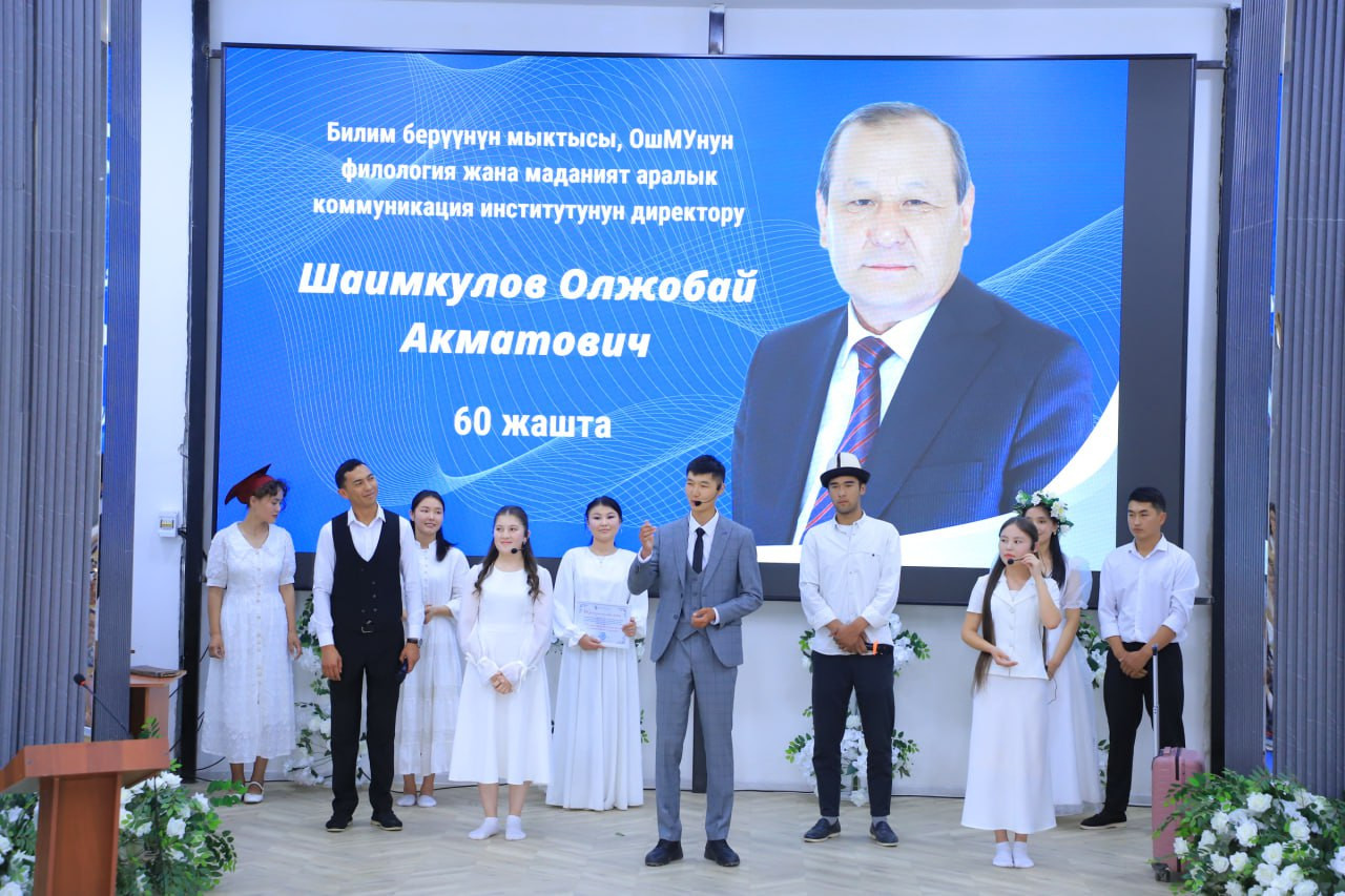 Бүгүн, 3-июнда ОшМУнун филология жана маданият аралык коммуникация институтунун директору, педагогика илимдеринин кандидаты, доцент Олжобай Шаимкуловдун 60 жылдык мааракеси белгиленди.