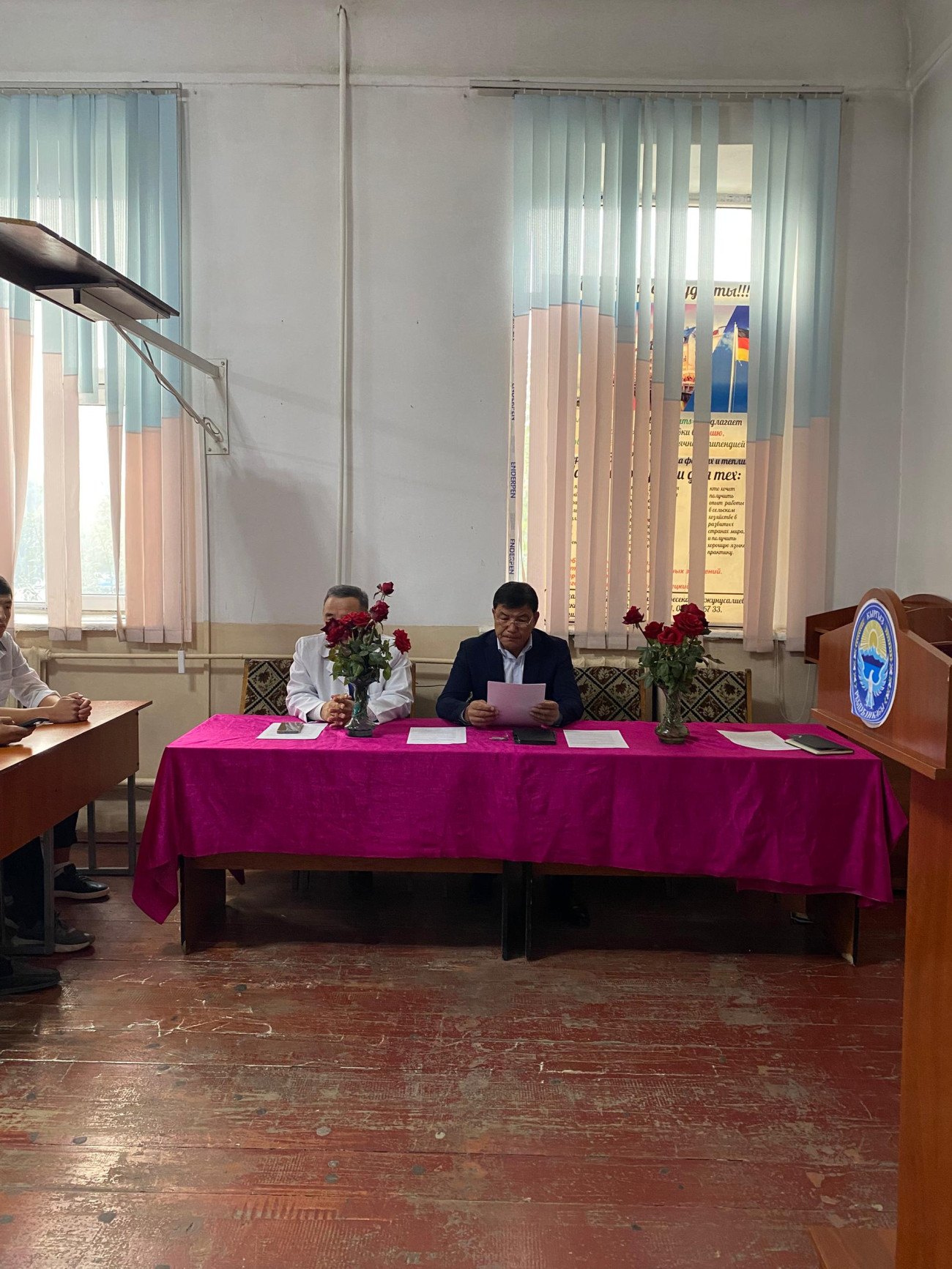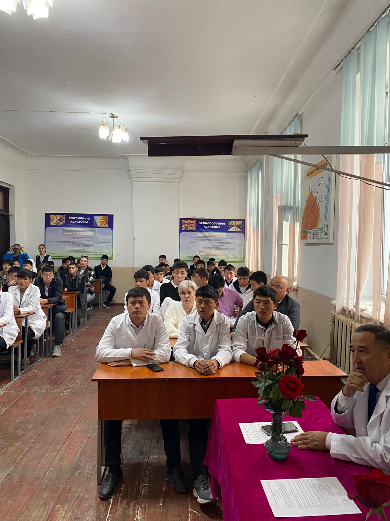Ага Кыргызстандын айыл чарбасына эмгек сиңирген кызматкер, доцент Абдирашит Халмурзаев, колледждин директору Полот Тувашев, окутуучулар жана студенттер катышты.