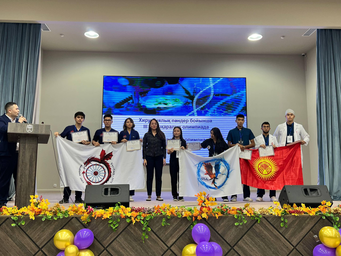 Олимпиада Жаш окумуштуулар жана студенттердин эл аралык форумунун алкагында Түштүк Казакстан медициналык академиясында уюштурулду. Ага Кыргызстан, Казакстан, Өзбекстан, Тажикстан, Азербайжандын медициналык жогорку окуу жайларынын студенттери катышты. Алар хирургия тармагындагы теориялык жана практикалык көндүмдөрүн көрсөтүштү.