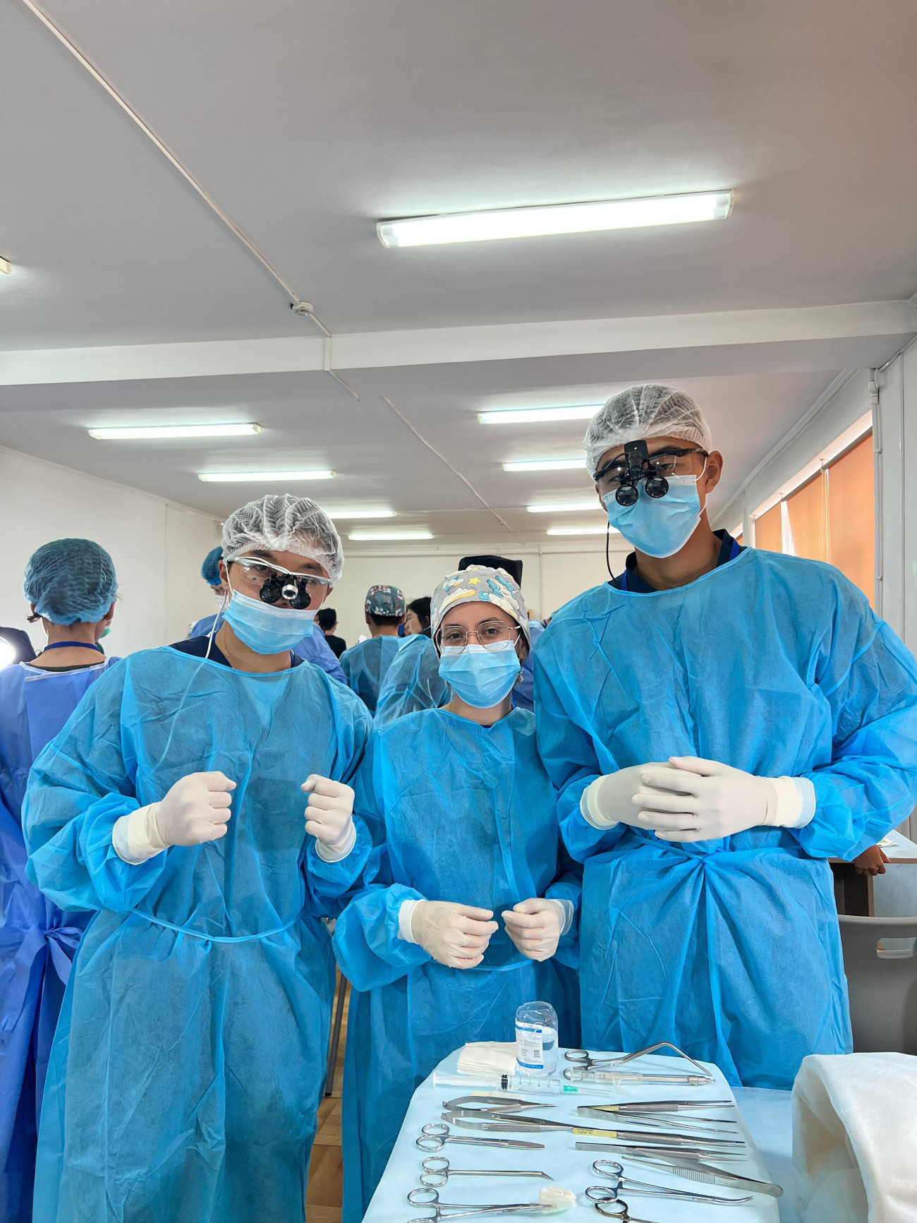 Мухаммедазиз Бакытбек уулу, Сайдулло Халмурзаев жана Бекзат Орозалиев нейрохирургия багыты боюнча операция жасоо ыкмалары, тигүү техникасы жана клиникалык абалдарды талдоо боюнча өз билгичтиктерин сынашты. Студенттерди Медицина факультетинин госпиталдык хирургия кафедрасынын башчысынын милдетин аткаруучу  Таалайбек  Сейитбеков жетектеп барды.