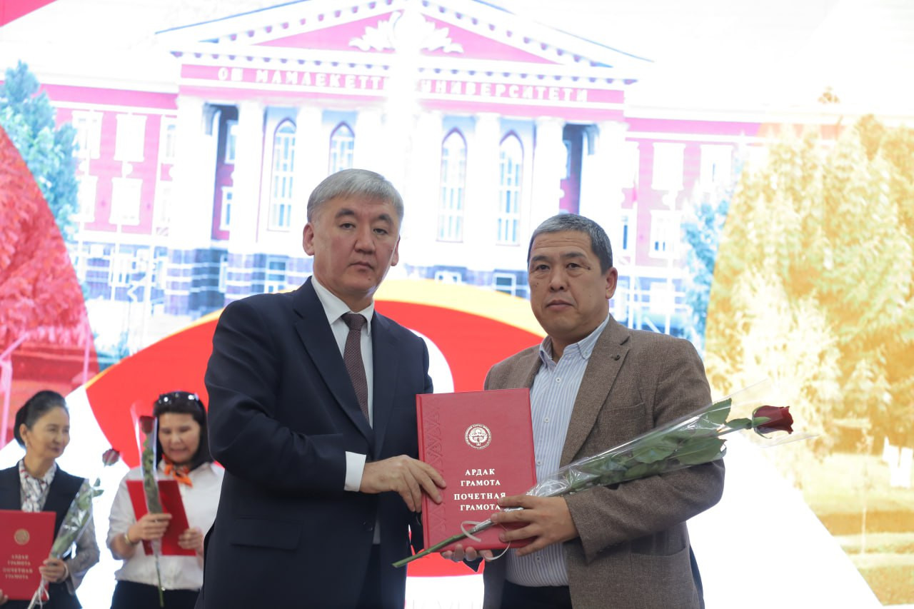 - Педагогика, искусство жана журналистика институтунун философия жана политология кафедрасынын профессорунун милдетин аткаруучусу Өмүрзак Акматов II даражадагы диплом жана акчалай сыйлык;