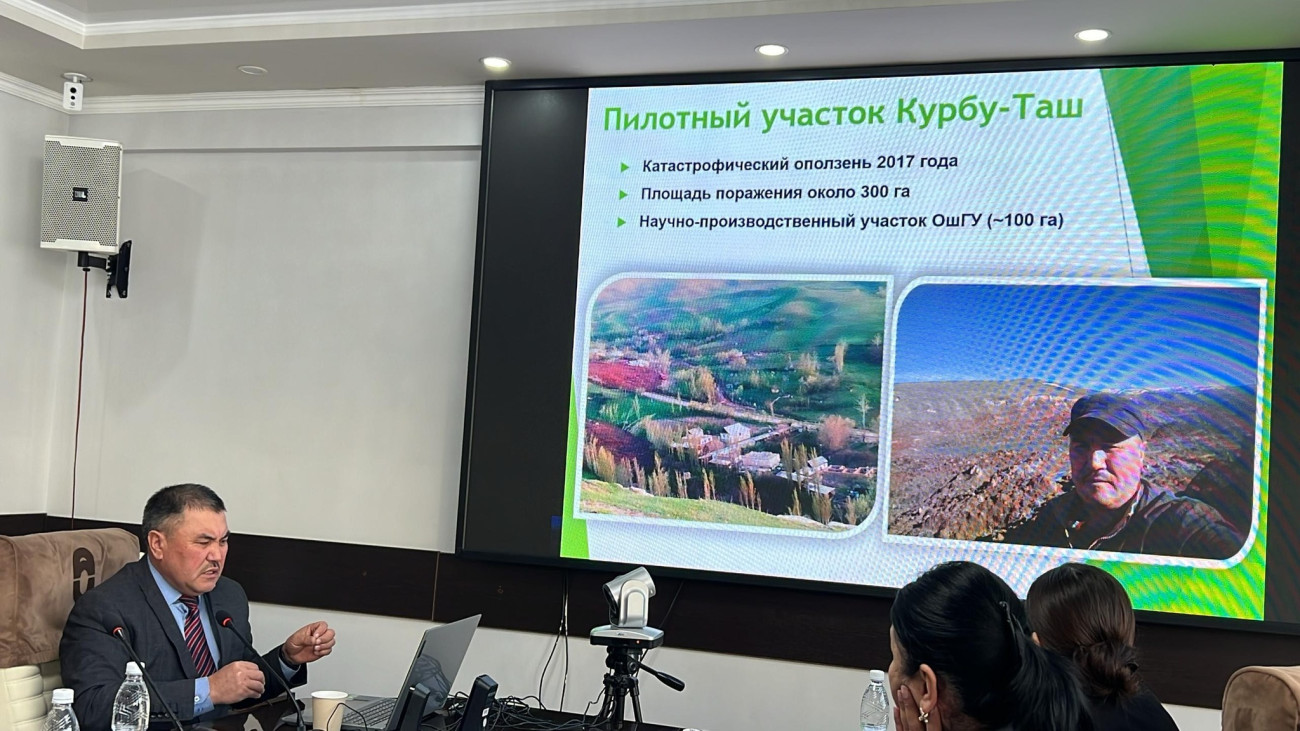 Иш-чара Илим, жогорку билим берүү жана инновациялар министрлиги тарабынан каржыланып жаткан илимий долбоорлордун алкагында уюштурулду. Анда ОшМУнун Тоо экосистемаларын сактоо жана жашыл инновациялар консалтинг борбору жүргүзүп жаткан жер көчкү баскан аймактарды калыбына келтирүү боюнча изилдөөлөрдүн жыйынтыктары сунушталды.