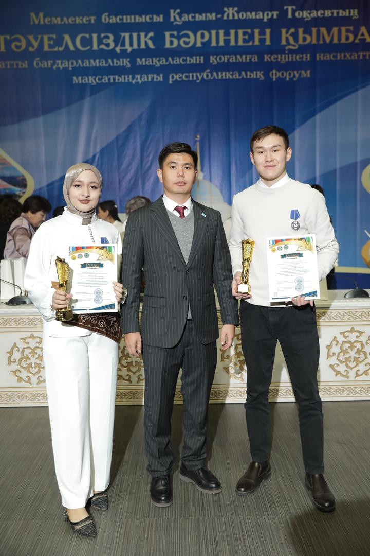 Сыйлык Казакстандын Астана шаарында «BILIM-ORKENIETI» Улуттук инновациялык илимий-изилдөө борбору тарабынан тапшырылып, жеңүүчүгө статуэтка жана I даражадагы диплом берилди.