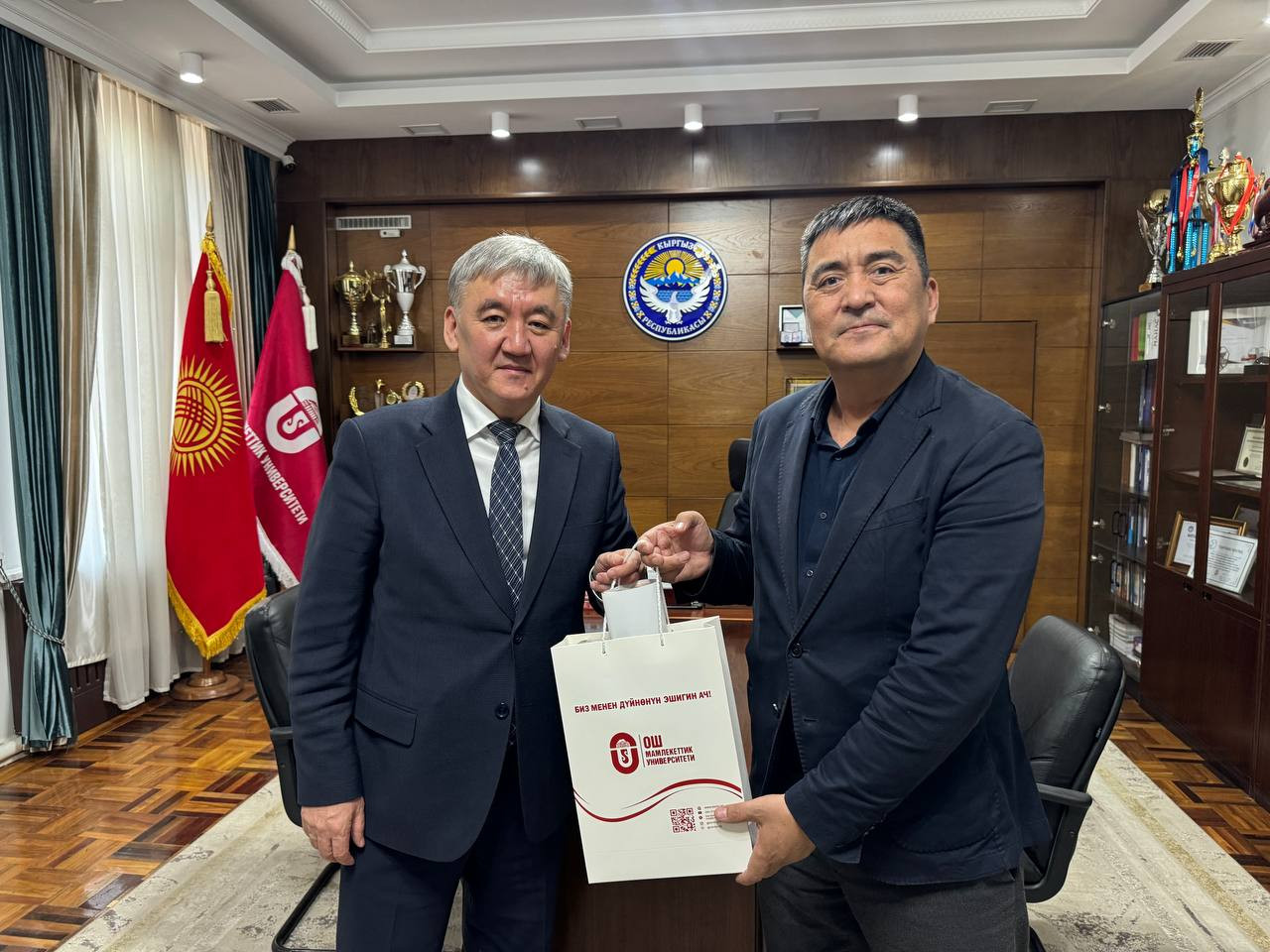 Иш-чаранын алкагында авторлор алгач ОшМУнун ректору Кудайберди Кожобеков менен жолугуп, китептин мазмуну, жазылыш тарыхы жана анда көтөрүлгөн маселелер тууралуу пикир алышты. Жолугушууда мугалимдин коомдогу орду жана билим берүүнүн учурдагы абалы тууралуу да сөз болду.