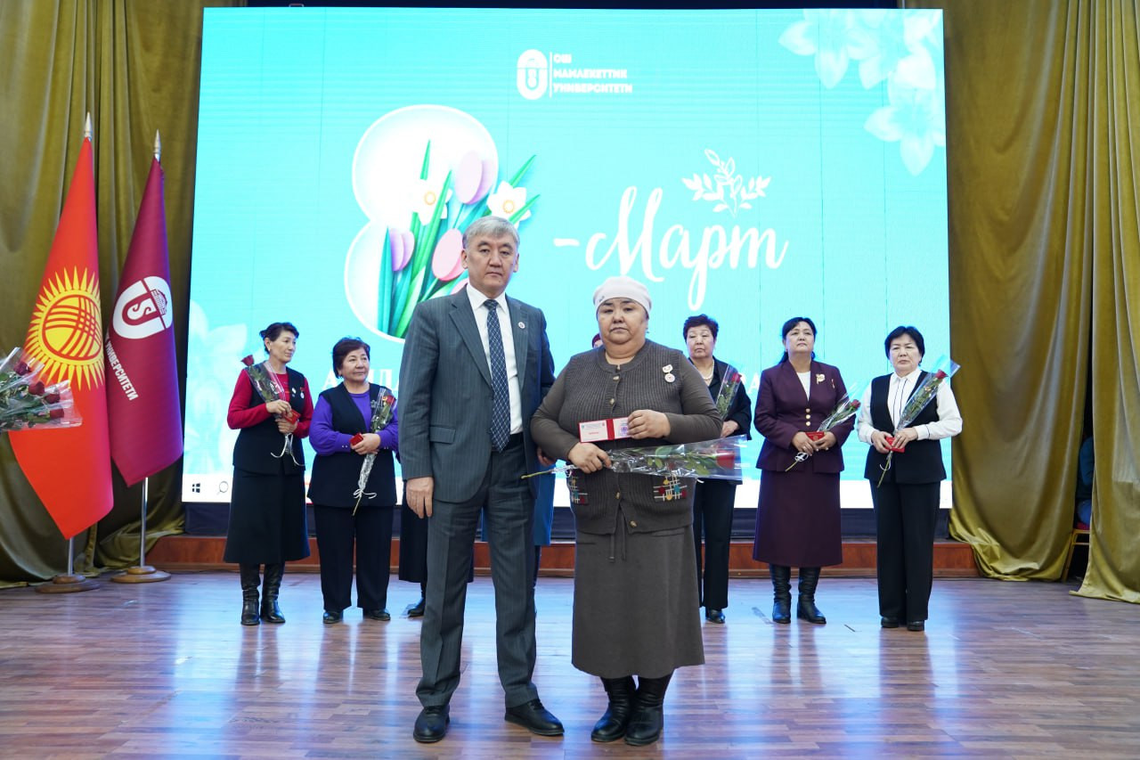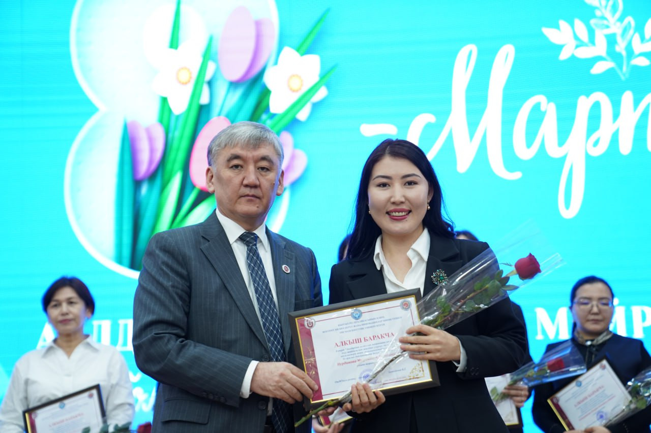 Ректор Кудайберди Кожобеков айымдарды майрамы менен куттуктап, алардын билим берүү, илим жана коомдук иштердеги салымы чоң экенин белгиледи.