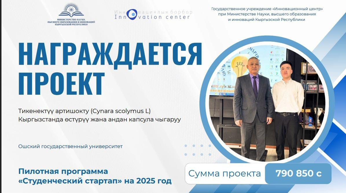 Ош мамлекеттик университетинин студенттери жаштар ишкерчилигин колдоого багытталган «Студенттик стартап – 2025» республикалык конкурсунда жеңүүчү болду. Натыйжада алар стартап-долбоорлорун ишке ашырууга мамлекеттик гранттарды утуп алышты.