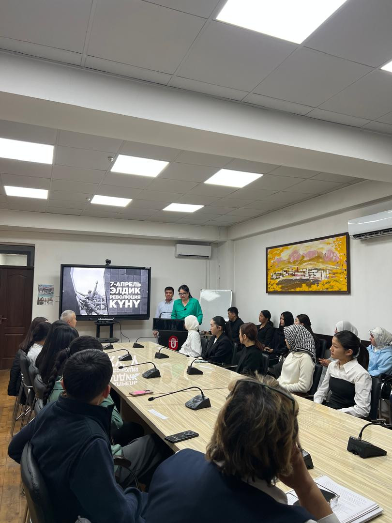 Анда студенттерге 2005-жылдагы Март революциясы жана 2010-жылдагы Апрель революциясы тууралуу видеохроникалар көрсөтүлүп, баяндамалар жасалды.