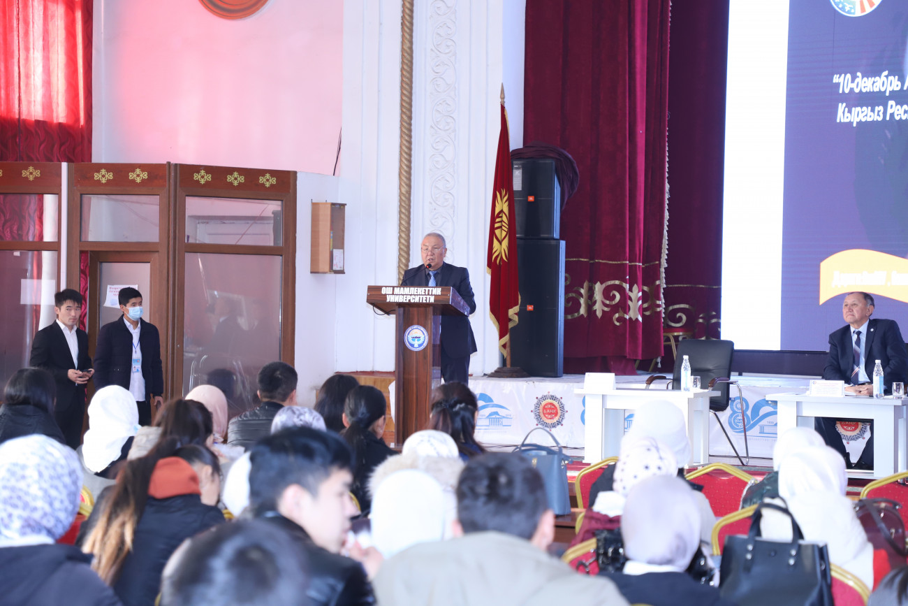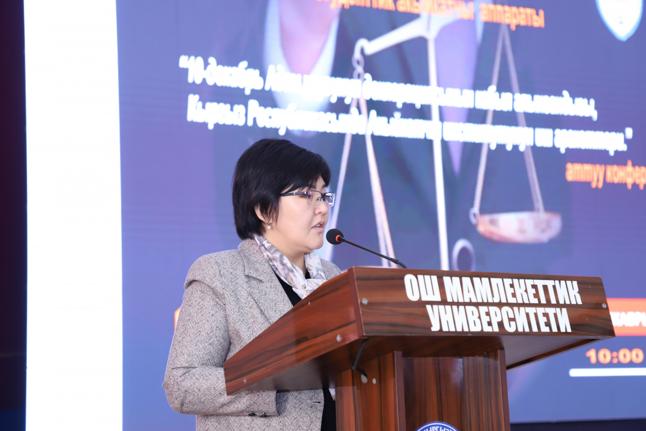ОшМУнун студенттик акыйкатчы аппараты «10-декабрь-Адам укуктарынын жалпы декларациясынын кабыл алынгандыгы, Кыргыз Республикасында Акыйкатчы институтунун иш-аракеттери» деген темада конференция өткөрдү. Иш-чараны ОшМУнун студенттик коомчулук менен иштөө боюнча проректору Жылдыз Артыкова ачты.