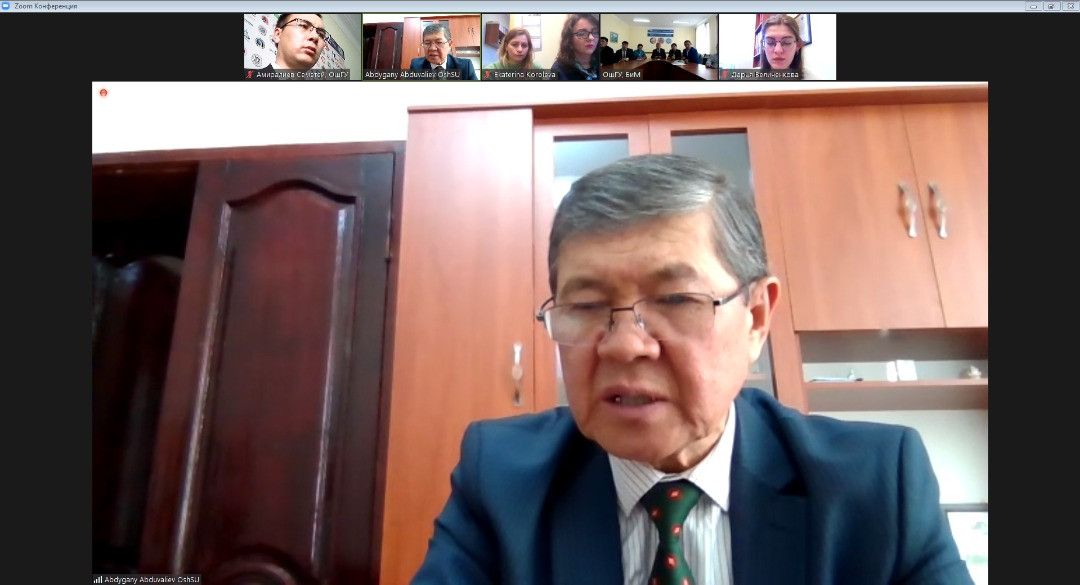 Санкт-Петербург политехникалык университети менен ОшМУнун ортосунда ишканалардагы экономика багытында биргелешкен билим берүү программасын түзүү боюнча видеоконференция болду.Ага Орусия тараптан Өнөр жай менеджменти, Экономика жана соода институтунун жогорку инженердик-экономикалык мектебинин директорунун орун басары Екатерина Королёва баштаган жамаат , ОшМУдан эл аралык байланыштар департаментинин директору Абдыганы Абдувалиев жана окуу жайдан өкүлдөр катышты.