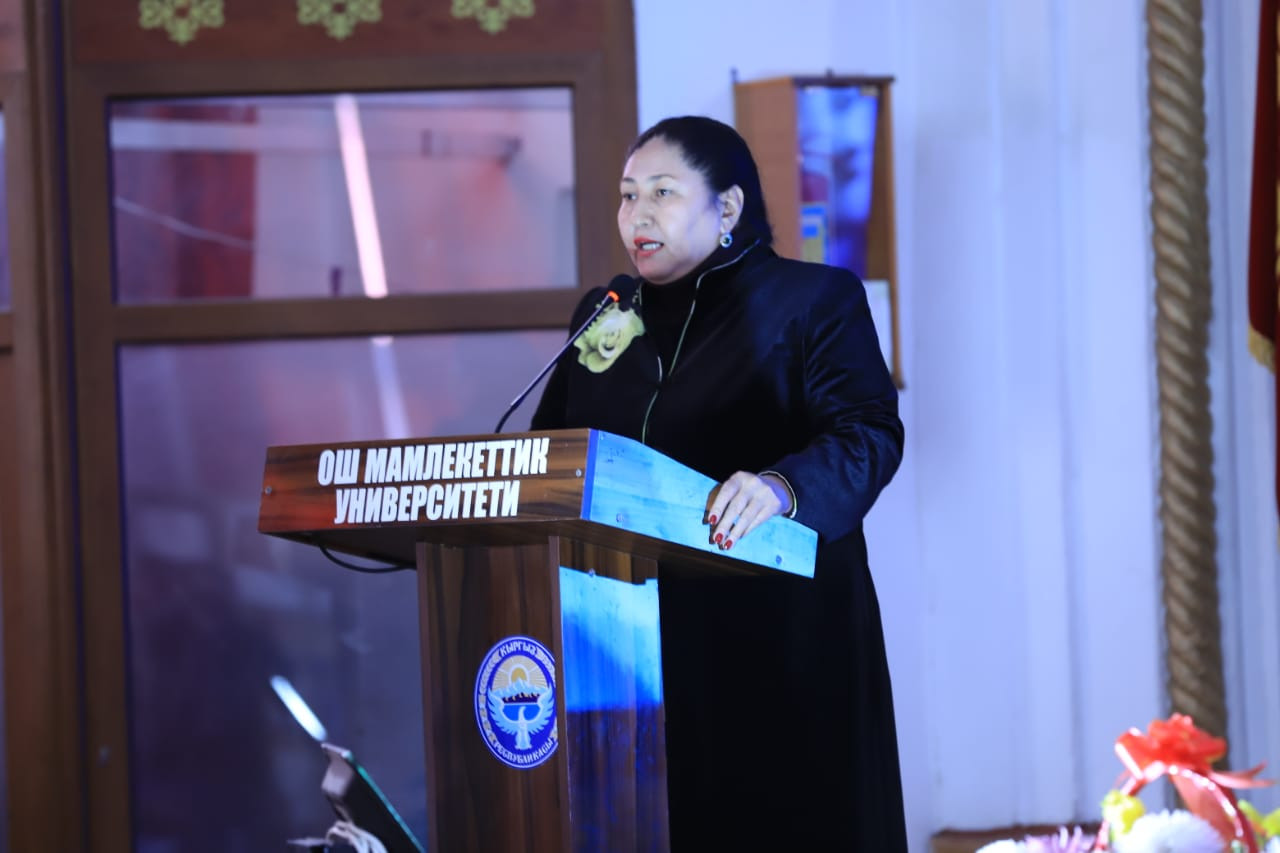 Ошондой эле ОшМУнун профессору, ф.и.д., Гулина Жамгырчиева “Заман чакырыктары көркөм адабиятта” деген темада илимий баяндама жасады.