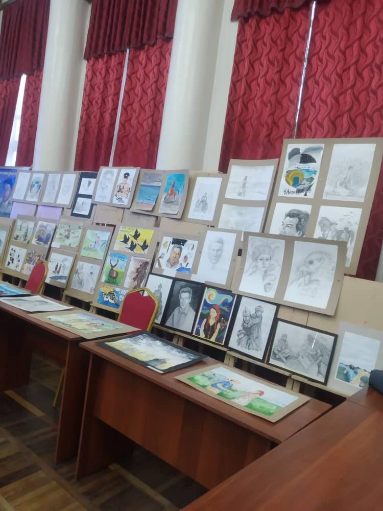 Кеченин коноктору Улуттук адабият күнүнө арналган Искусство факультетинин таланттуу студенттеринин сүрөт көргөзмөсүнө жана окуу жайдын илимий китепканасынын китеп көргөзмөсүнө да күбө болушту.