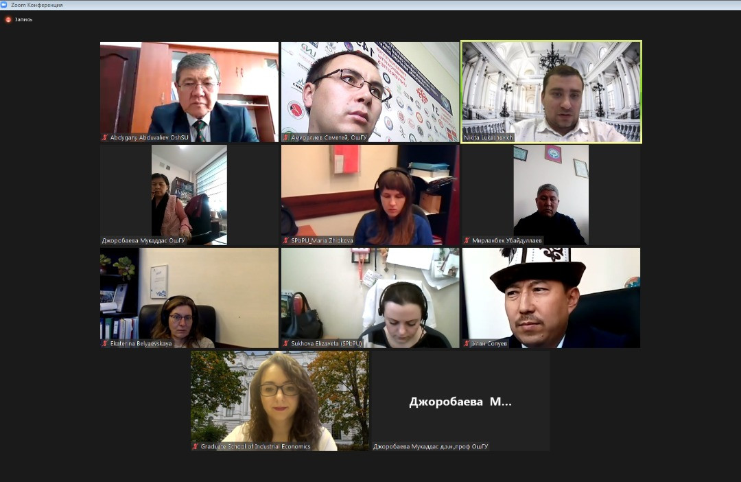 Санкт-Петербург политехникалык университети менен ОшМУнун өкүлдөрүнүн катышуусунда академиялык мобилдүүлүк маселелерин талкуулоо максатында кезектеги видеоконференция болду. Ага аталган окуу жайдан эл аралык жана окуу жайлар аралык кызматташтык бөлүмүнүн башчысы Екатерина Беляевская, ОшМУдан эл аралык байланыштар департаментинин директору Абдыганы Абдувалиев жана тиешелүү жетекчилер, адистер катышты.
