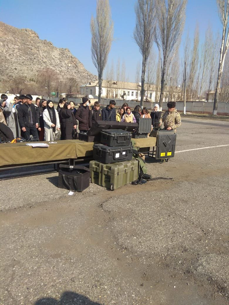 Ачык эшик күнүнө аскерге чейинки даярдык предметинин окутуучусу, подполковник Жуманазар Самидинов жетектеп барды. Мындай иш-чаралар студенттердин мекенге болгон сүйүүсүн арттыруу, аскер турмушу менен тааныштыруу максатында уюштурулуп келет.