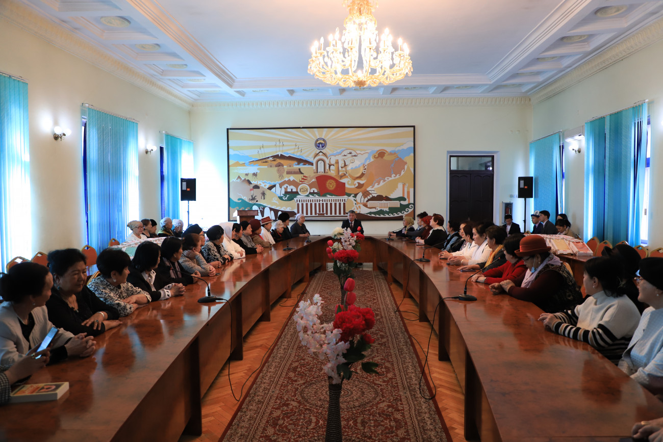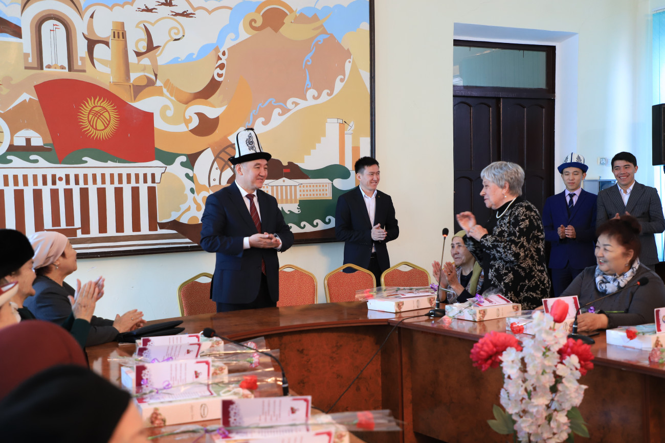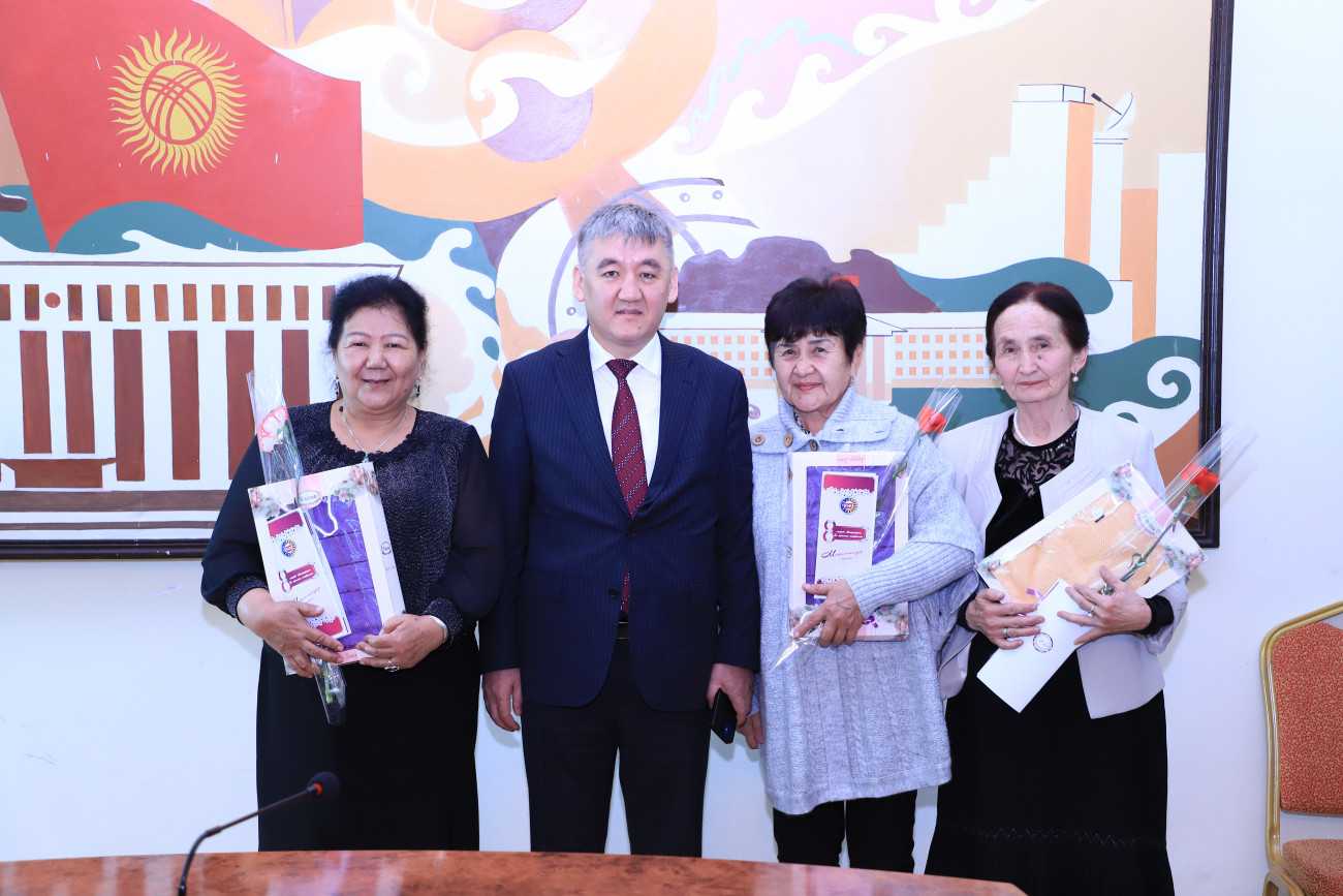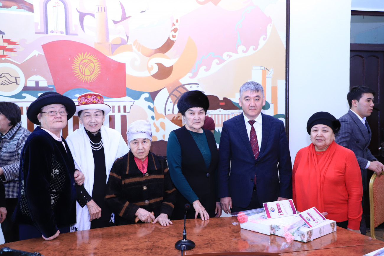 ОшМУнун ректору Кудайберди Кожобеков окуу жайда көп жылдан бери үзүрлүү эмгектенип, өмүрүн, тажрыйбасын университетке арнап келе жаткан ардагер эжекелерди куттуктады.