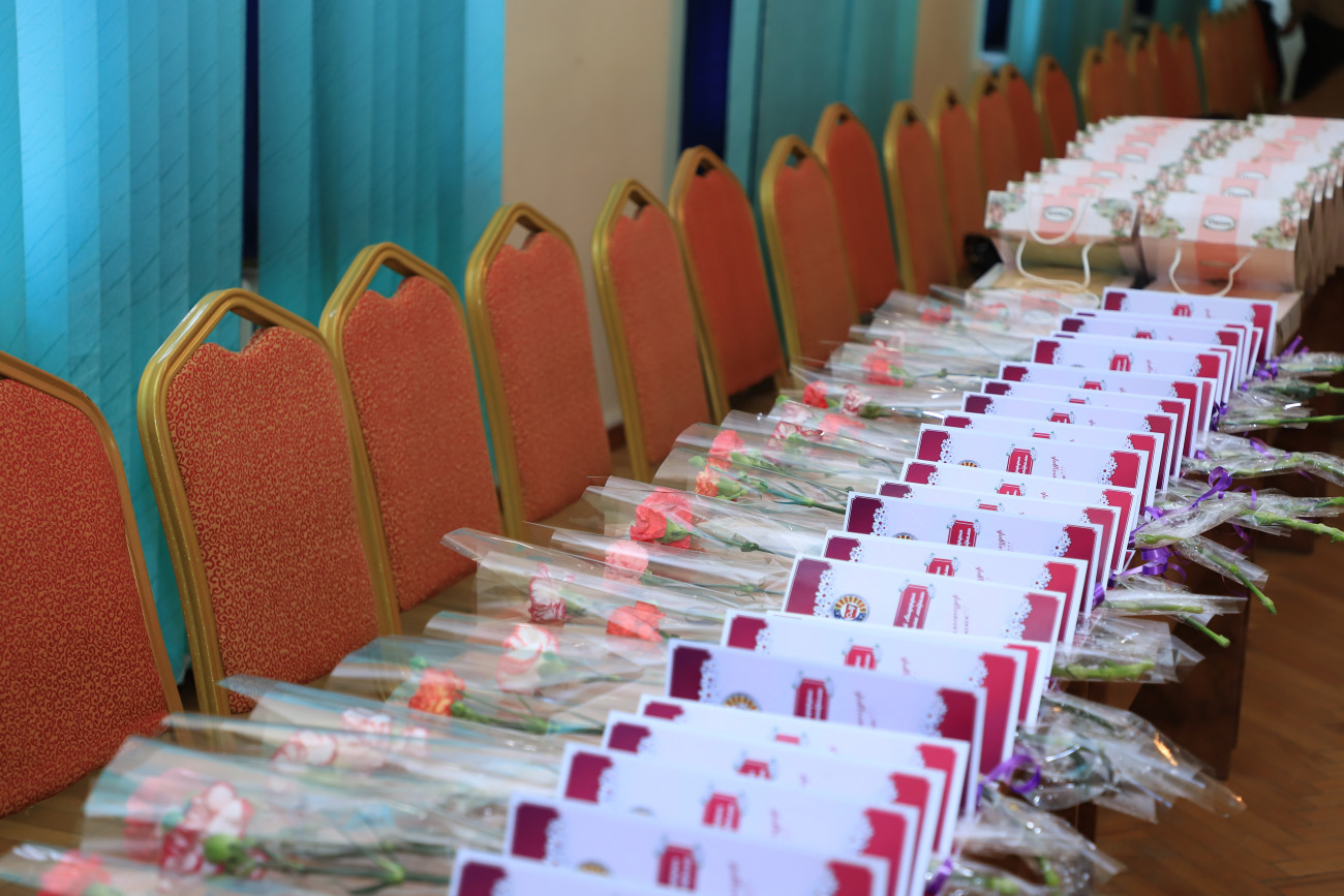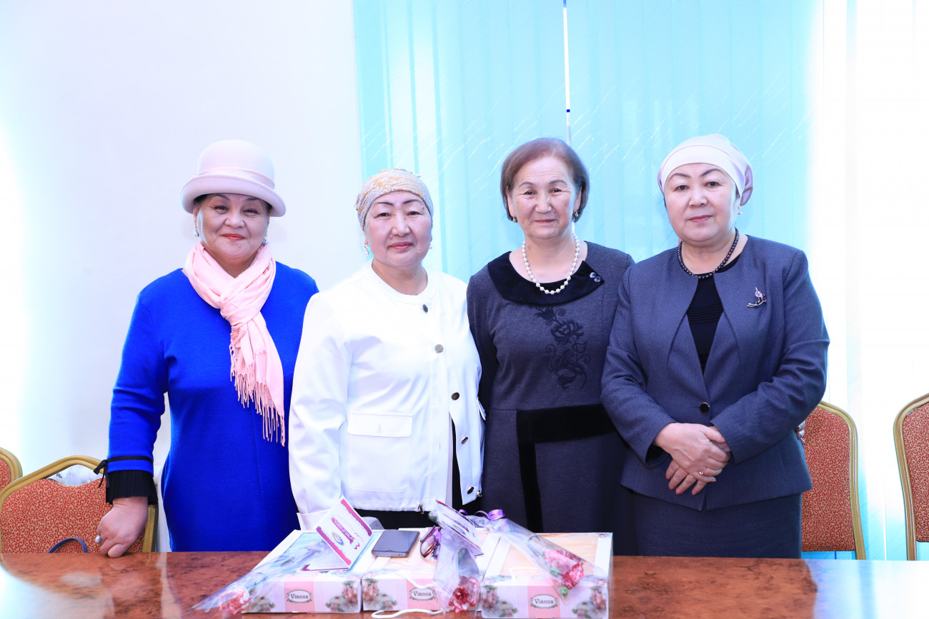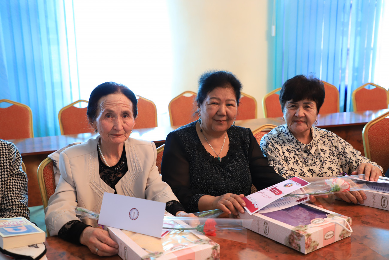 Ар бир эжекенин билим берүүдө, жаштарды тарбиялоодо, университеттин өнүгүүсүнө кошкон салымдарын айтып, өзүнүн майрамдык белегин тартуулады. Арадагер эжекелер ыраазычылык сөздүрөн айтып, окуу жайда өсүп-өнүгүү болуусун тилек кылышты.