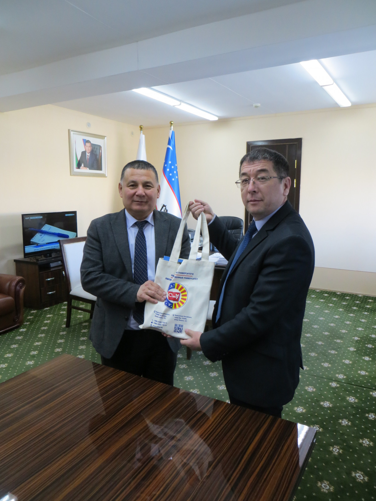 ОшМУнун табият таануу, туризм жана агрардык технологиялар факультетинин деканы, г.и.д., профессор А. Низамиев жана экономикалык география, тармактык экономика жана туризм кафедрасынын окутуучусу, г.-м.и.к. Р. Умаралиев  14-19-март күндөрү окутуучулардын мобилдүүүлүк программасы боюнча Ургенч мамлекеттик университетинде болуп келишти.
