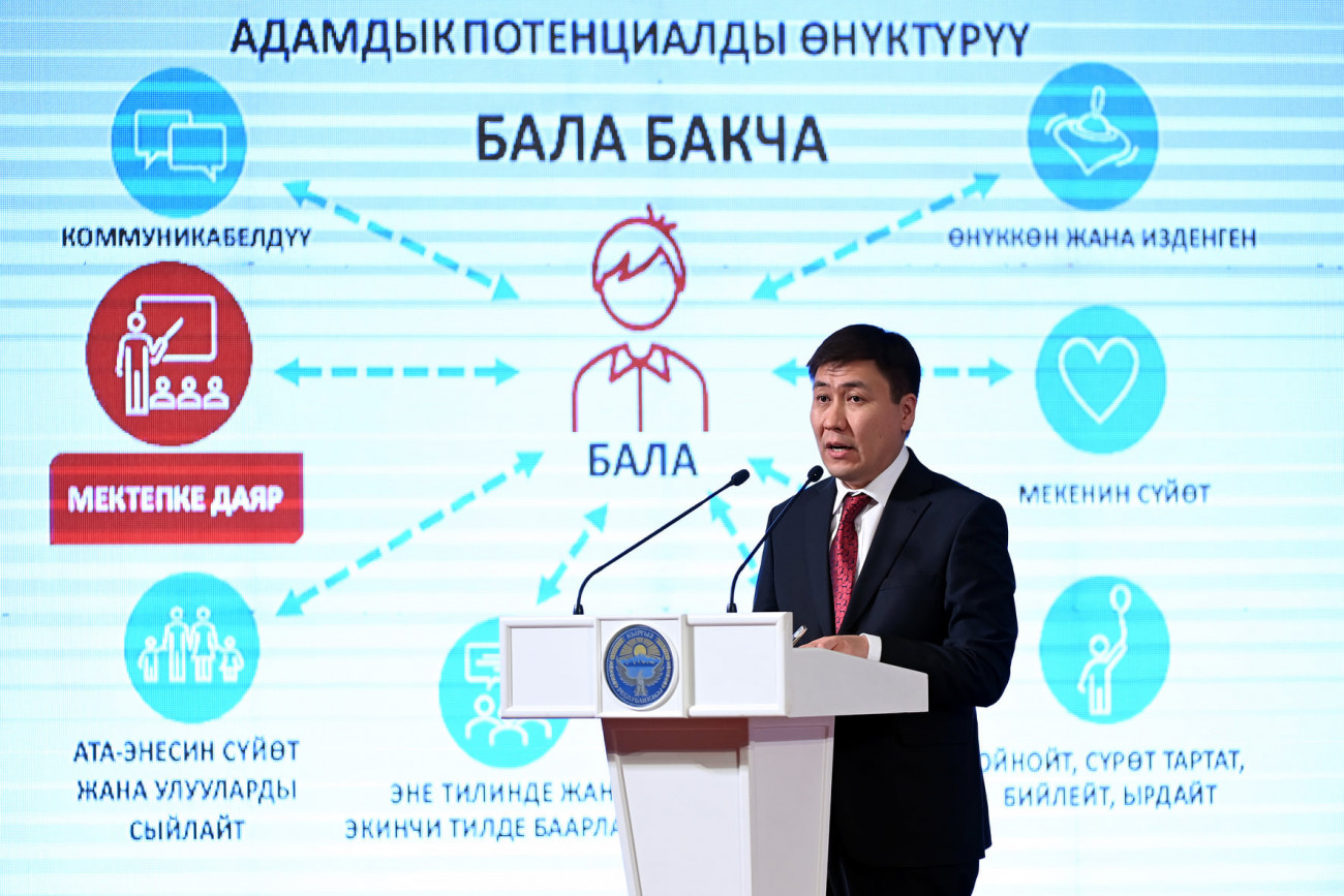 Жыйында Билим берүү жана илим министри Алмазбек Бейшеналиев баяндама жасап, анда төмөнкүлөргө токтолду: