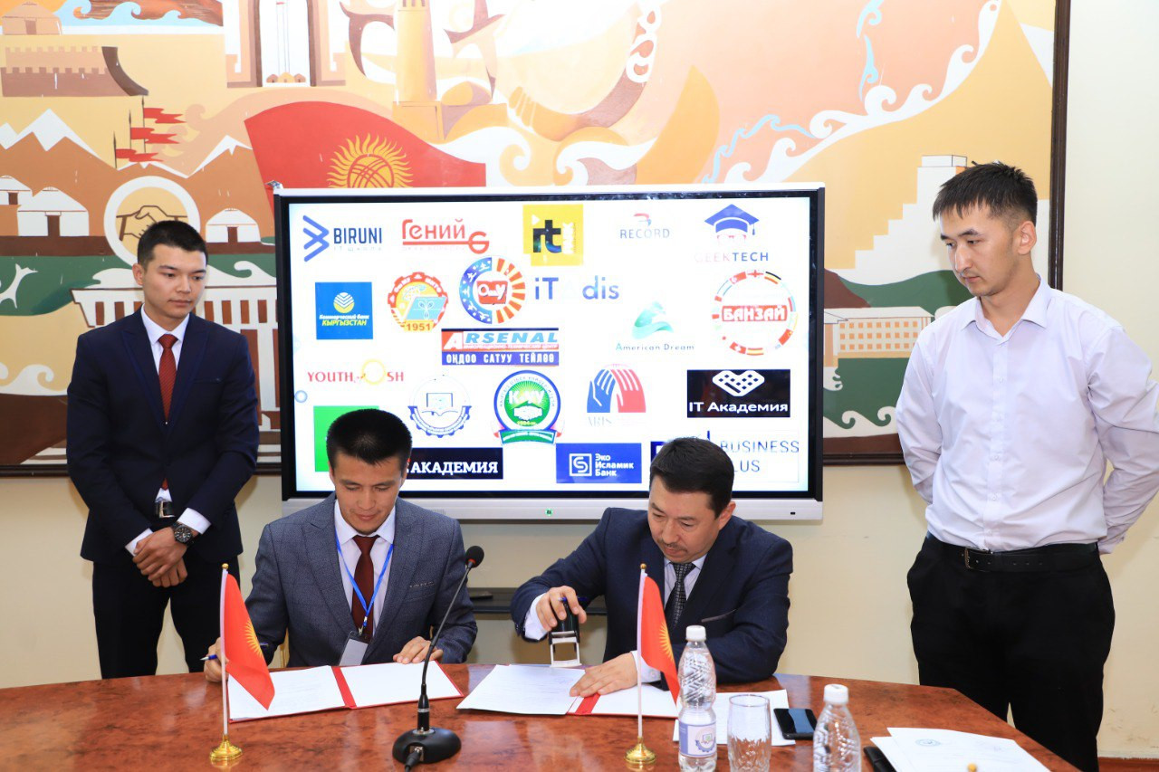 ОшМУнун математика жана информацилык технологиялар факультетинин автоматташтырылган системалар жана санариптик технологиялар кафедрасынын программалык инженерия адистигинин өнөктөштөрү менен кызматташуу жөнүндө меморандумга кол коюу аземин өткөрдү.