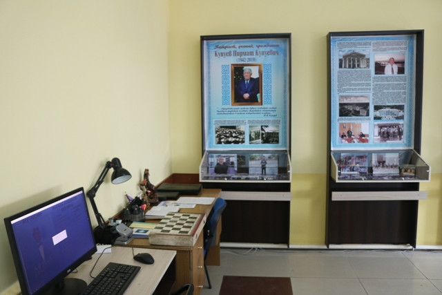 В центре выставлены труды, научные статьи, книги, монографии, учебники и учебно-методические пособия и материалы, отражающие деятельность научной школы П профессора Купуева.