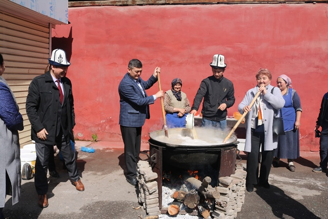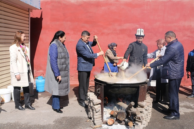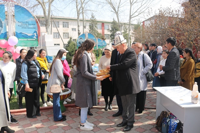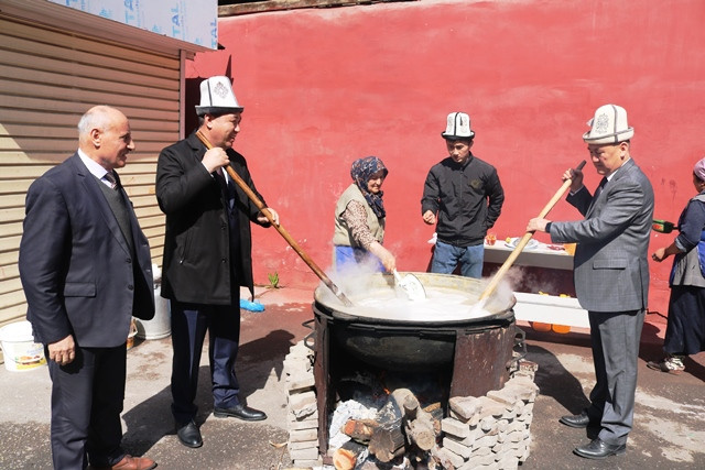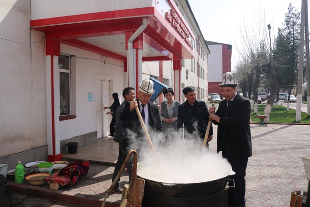 В эти дни на факультетах, колледжах ОшГУ проходят праздничные мероприятия, посвященные Ноорузу. Студенты и преподаватели устраивают народные гулянья, представляют национальные песни, танцы, соревнуются в национальных играх. И конечно же гвоздем всех праздников становится традиционный сумалак. Надо отметить, что пандемия заставила людей ограничить свободу действий, отказаться от привычного образа жизни и поэтому нынешний весенний праздник Нооруз проходит особенно весело и ярко, при активном участии общественности. Все праздничные мероприятия проходят при непосредственном участии руководителей университета во главе с ректором. Так, профессор Кудайберди Кожобеков поздравил с праздником коллег и студентов, посетив кыргызско-европейский факультет, факультеты русской филологии и искусств. Гости приняли участие в процессе приготовления сумалака, пообщались с преподавателями и студентами, пожелали новых успехов и обновления.