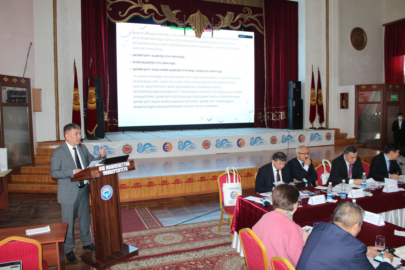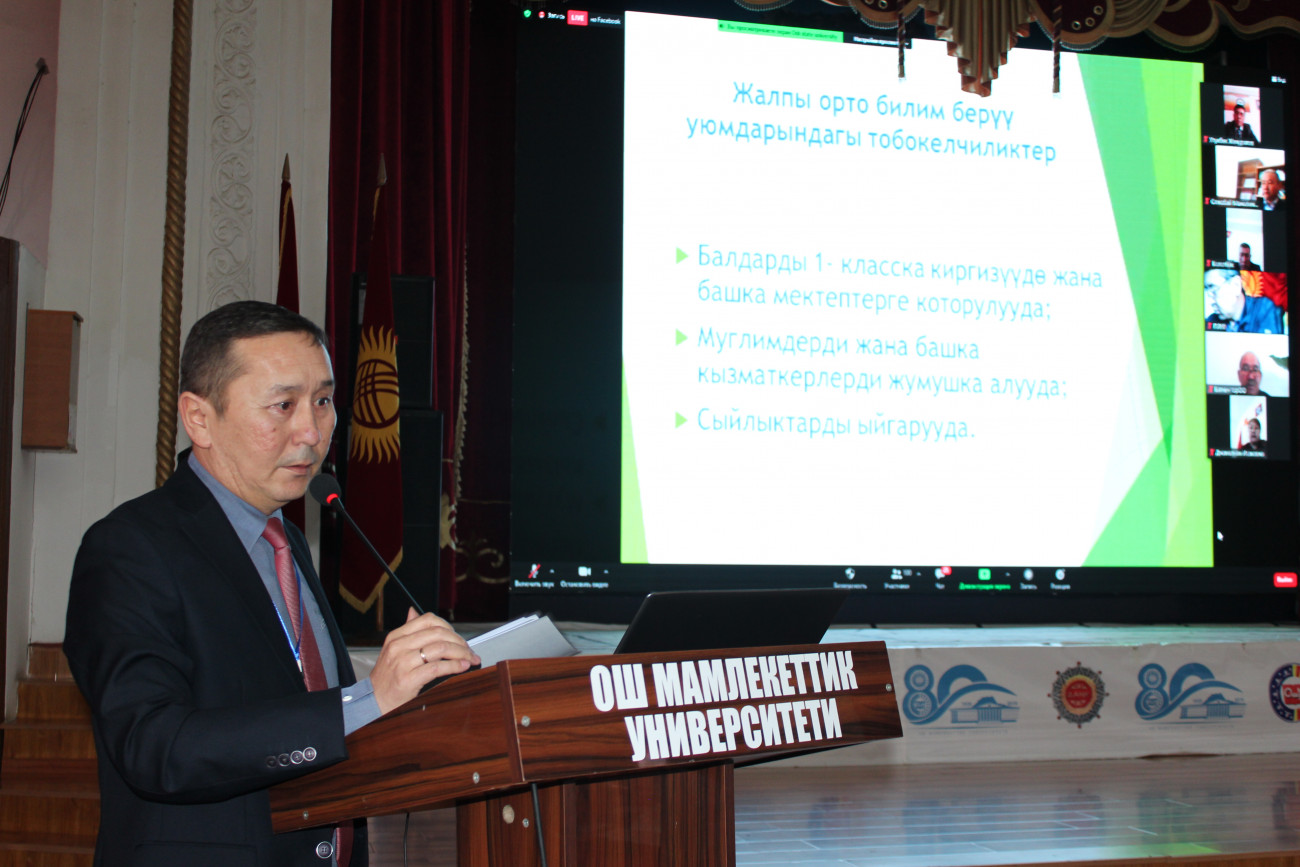 На заседании коллегии в ОшГУ состояля предметный разговор по ряду актуальных проблем, касающихся разных сфер образования. Так, заслушали и обсудили доклады руководителя управления лицензирования и аккредитации ведомства Калдыбая уулу Мирлана “Об итогах аккредитации образовательных организаций и образовательных программ", главы управления школьного и внешкольного образования Марата Усеналиева “О сборе средств в общеобразовательных организациях”, “О организации экологического конкурса "Школа-наш зеленый дом" для учителей и учащихся общеобразовательных организаций КР”, заместителя министра Нурлана Омурова “О проведении международного форума ректорами высших учебных заведений”, ректора ОшГУ Кудайберди Кожобекова “Об оптимизации нормативных правовых актов в сфере образования КР”, руководителя сектора ведомства по предупреждению коррупции Марата Усупбекова “О реализации мер по предупреждению коррупции министерством образования и науки КР”. В заключительной части работы коллегии лучшим органам образования и школам, показавшим высокие результаты по количеству поступивших в бюджетные отделения ОшГУ в 2020/2021 учебном году. Наград Ошского государственного университета удостоились Кара-Суйский, Ноокатский, Алайский, школы имени Нишанова, Нариманова и Кирова г. Ош.