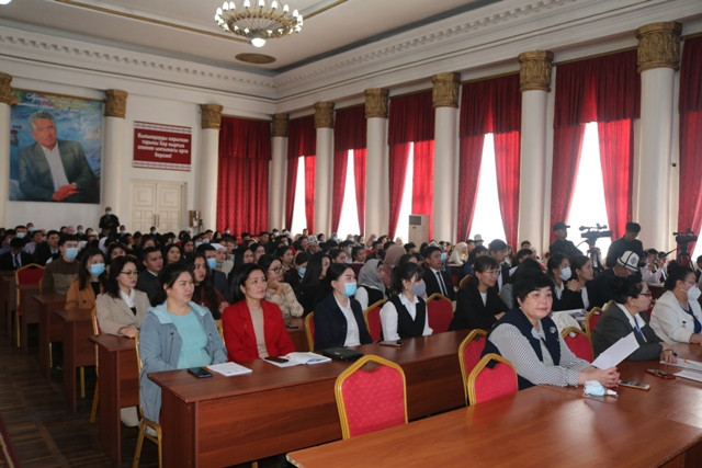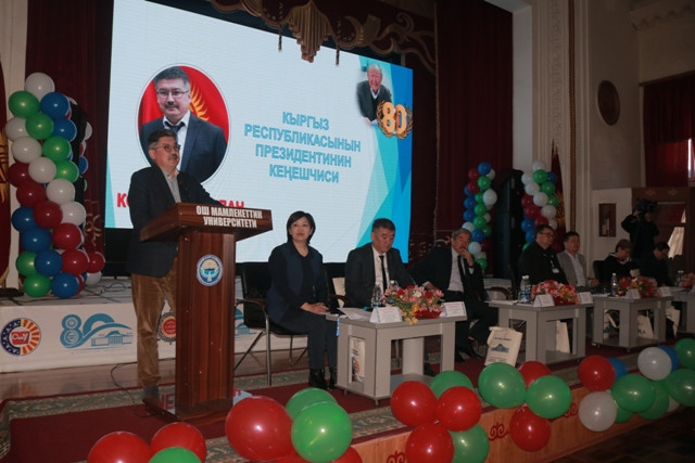 В ОшГУ под таким названием прошла научно-практическая конференция посвященная 80-летию народного писателя КР и видного общественного деятеля Казата Акматова, организованная совместно с государственной службой по интеллектуальной собственности и инновациям.