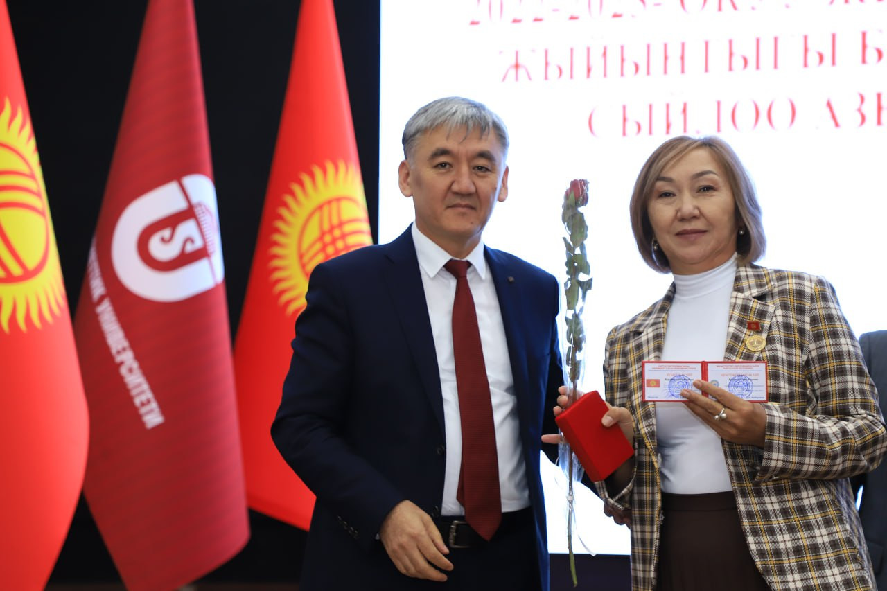 Так, почетных званий и нагрудных знаков "Заслуженный экономист Кыргызской Республики" удостоились доктор экономических наук, профессор Ч. Кулуева и "Заслуженный врач Кыргызской Республики" доктор медицинских наук, профессор Р. Маметов.
