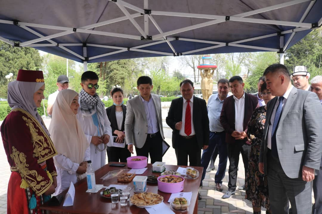 Кафедра востоковедения и НИИ востоковедения ОшГУ организовали ярмарку ценностей восточных народов, учебной литературы, блюд национальной кухни, культурных традиций. На мероприятие были приглашены старшеклассники школ города, которые воочию наблюдали достижения студентов, их успехи в изучении языков, культур народов востока, ознакомились с национальными культурами восточных народов, со специальностями, предлагаемыми факультетом востоковедения и истории ОшГУ. Участникам культурной ярмарки студенты представили концертную программу-танцы и песни народов востока.