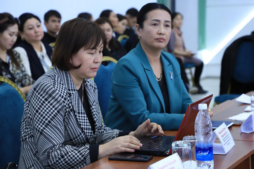 В ОшГУ состоялось заседание "Методология преподавания кыргызского языка с использованием современных технологий", на котором приняли участие проректор по государственному языку и социальной работе ОшГУ Мастура Шарипова, директор департамента среднего профессионального образования ОшГУ Мамажакып уулу Чынгызбек, преподаватели и студенты колледжей города.