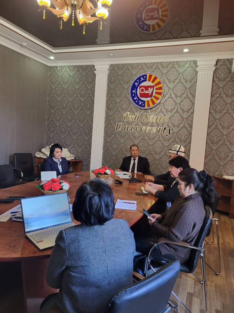 В ОшГУ состоялось совещание руководителей прикрепленных школ начальных образовательных учреждений с участием директора департамента среднего профессионального образования ОшГУ Чынгызбека Маматжакып уулу.