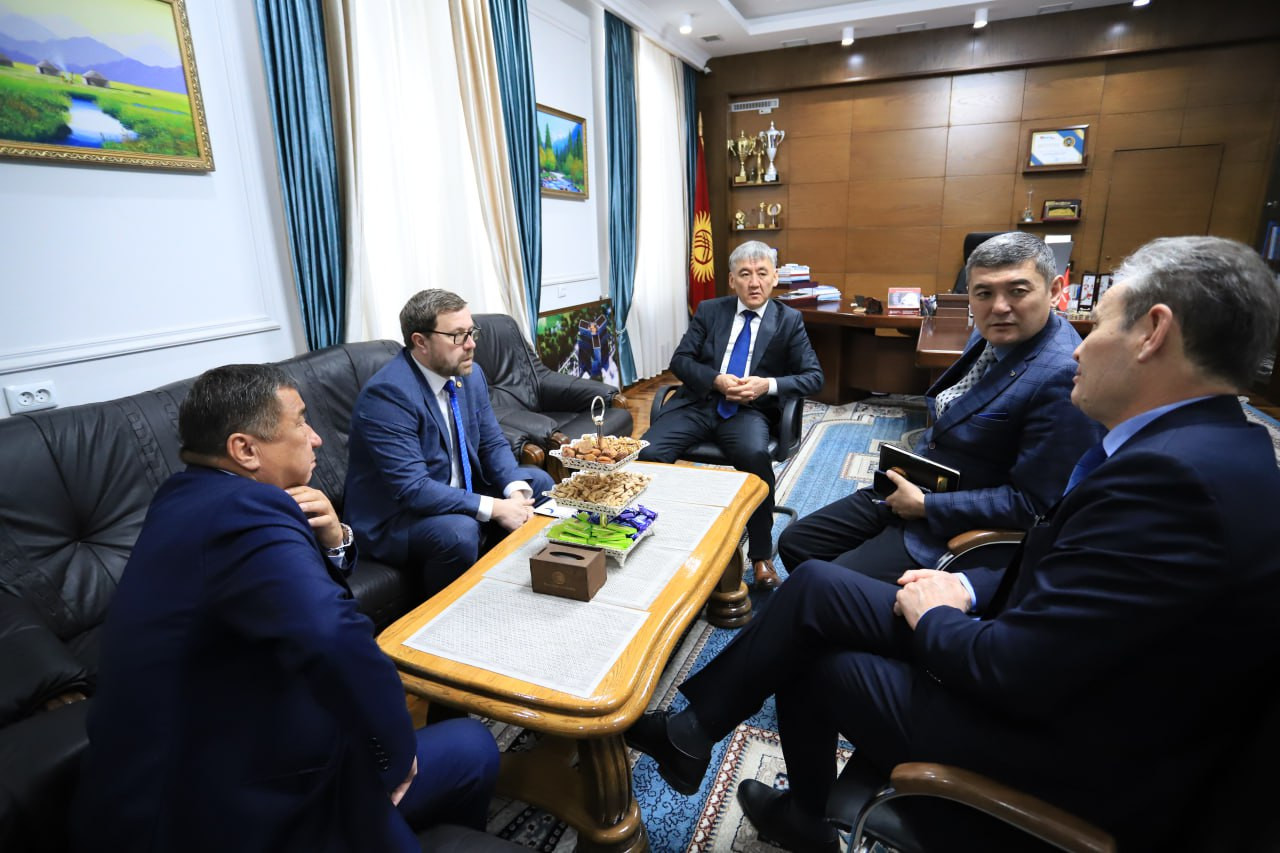 ОшГУ посетила делегация Кыргызско-Российского Славянского университета имени Б. Ельцина во главе с ректором Денисом Фоминым-Ниловым. Гостей принял ректор ОшГУ Кудайберди Кожобеков.