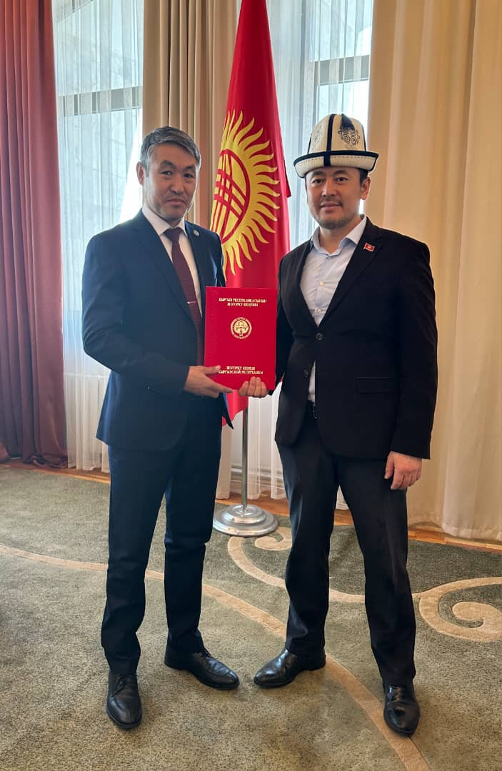 Директор центра информации и связи с общественностью ОшГУ Медербек Ниязалиев удостоился Почетной грамоты фракции "Ыйман нуру" Жогорку Кенеша КР за плодотворный труд в области образования, воспитание подрастающего поколения и активную общественную деятельность.