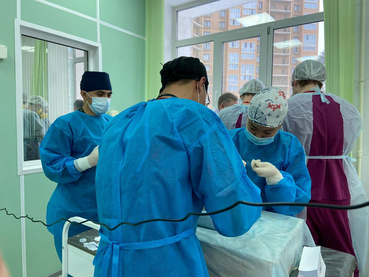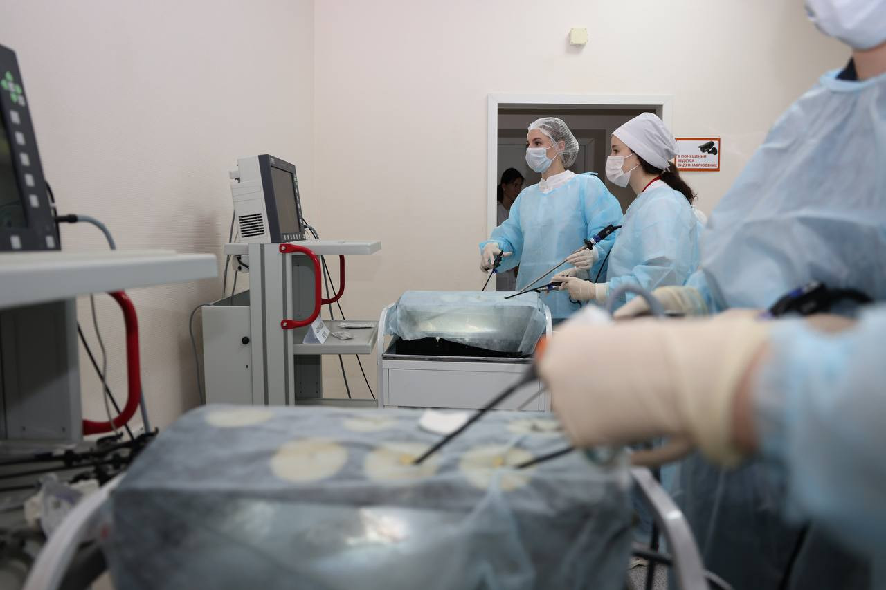 Студенты делалаи операции на животных при помощии лапараскопа. Наряду с этим выполняли разные манипуляции по обработке ран.