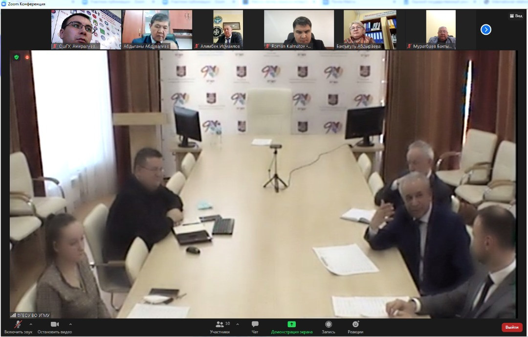 Прошла встреча руководителей ОшГУ и Уральского государственного медицинского университета в онлайн формате. В ней приняли участие проректоры, деканы и специалисты обоих вузов.