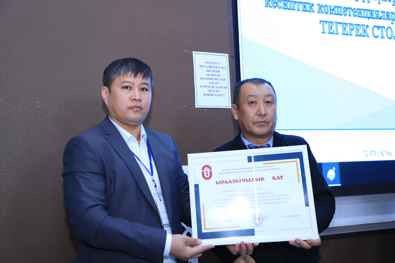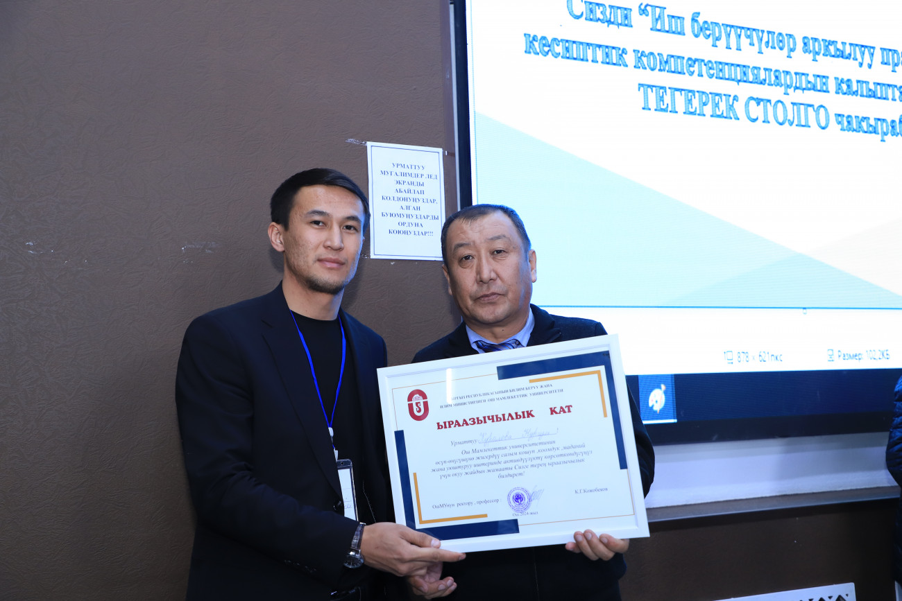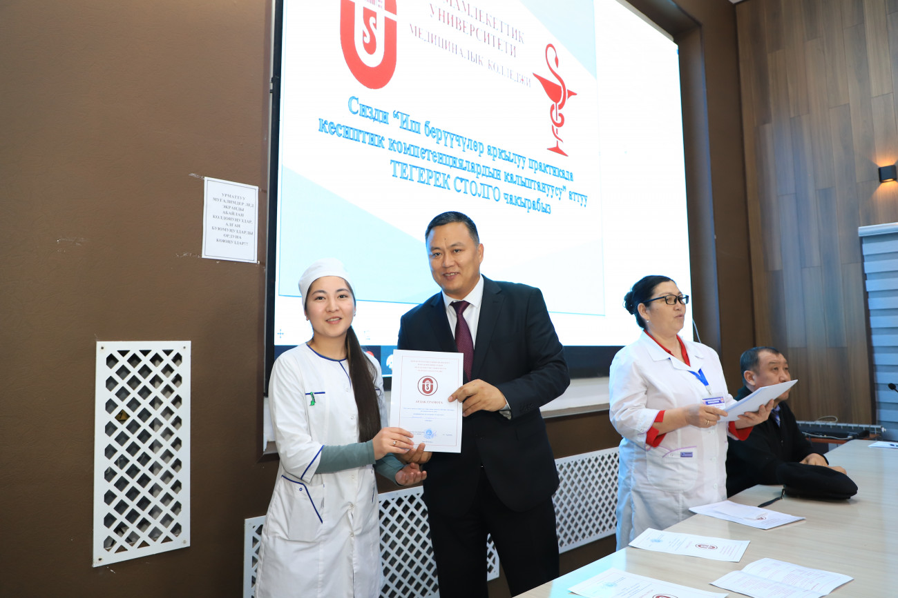 ОшМУнун медициналык колледжи  “Иш берүүчүлөр аркылуу практикада кесиптик компетенциялардын калыптануусу” деген темада тегерек стол уюштурду. Иш-чарага университеттин практика жана карьера борборунун жетекчиси Талантбек Матикеев, иш берүүчүлөр болуп саналган Ош облустар аралык бириккен клиникалык ооруканасынан, Ош шаардык клиникалык ооруканасынан тиешелүү өкүлдөр, даркыналардын жетекчилери,  30 дан ашуун бүтүрүүчүлөрдүн ата-энелери,  бүтүрүүчүлөрү, окутуучулар   катышты.