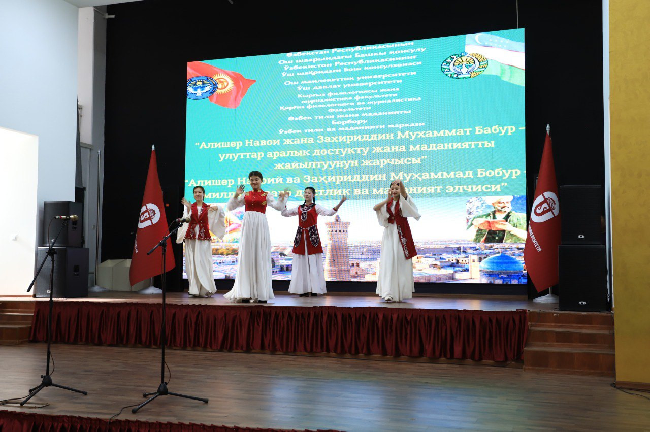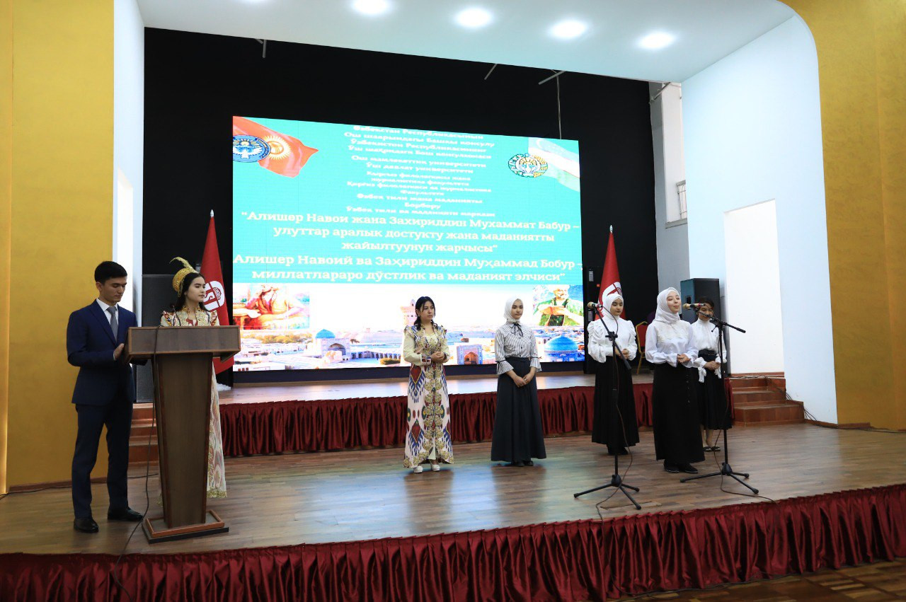 В ОшГУ прошел литературно-музыкальный вечер "Алишер Навои и Захириддин Мухаммад Бабур – вестники межнациональной дружбы и культуры". Мероприятие было организовано в целях дальнейшего укрепления добрососедских и дружественных отношений между Узбекистаном и Кыргызстаном и в честь 85-лети ОшГУ.