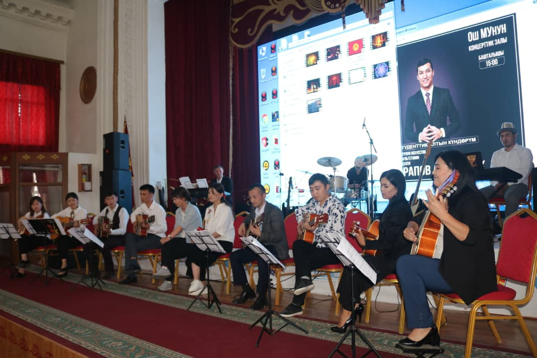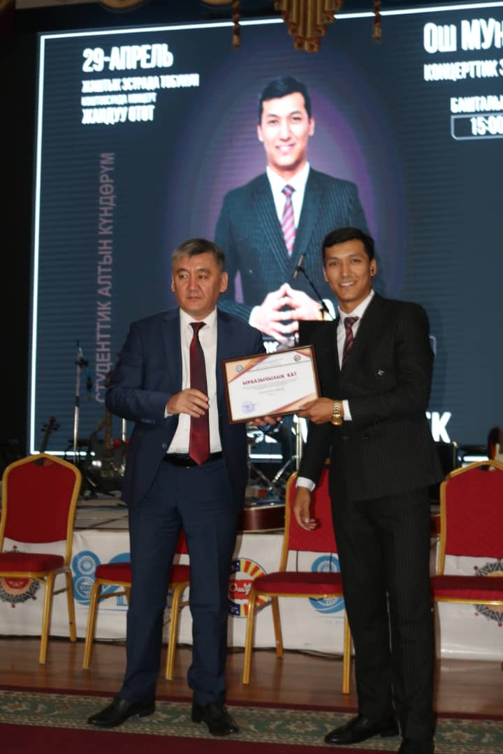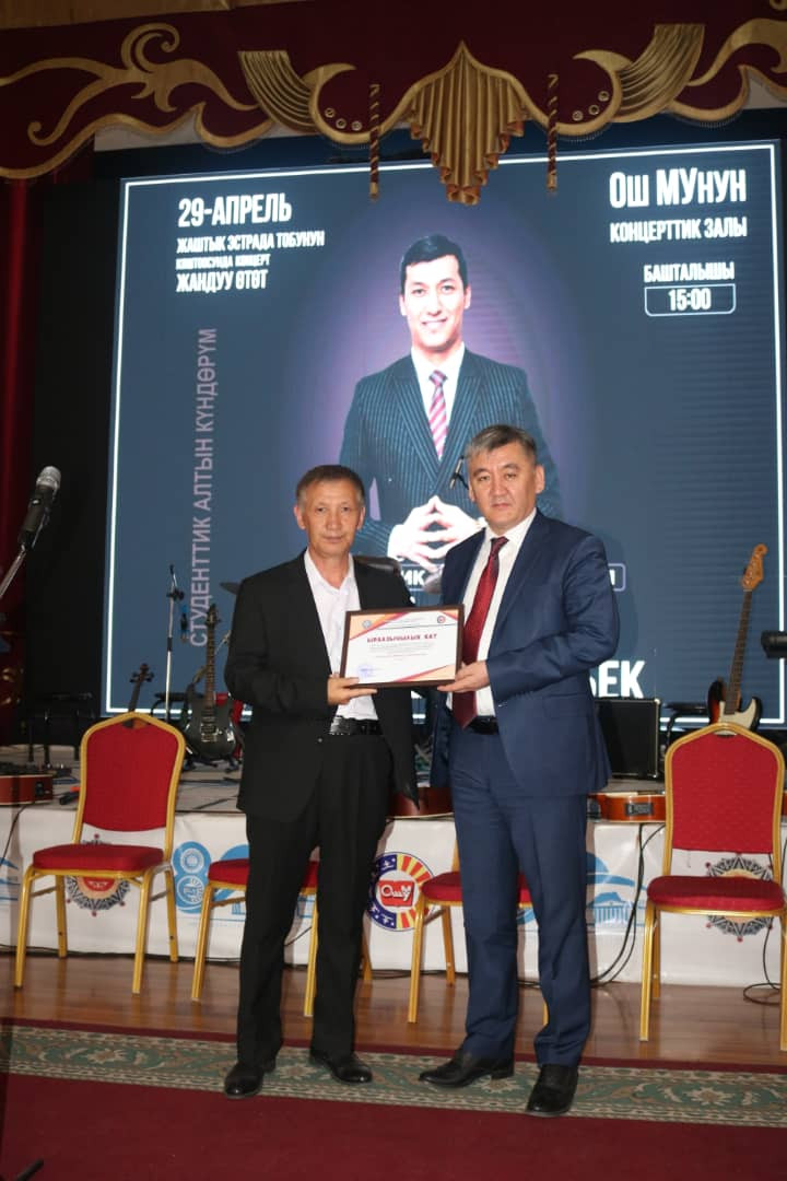 На концерте присутствовали преподаватели, студенты, широкий круг творческой общественности.p> Ректор ОшГУ Кудайберди Кожобеков поздравил молодого певца началом творческой деятельности и пожелал дальнейших успехов. Наряду с этим профессор вручил виновнику торжества и его наставникам благодарственные письма.