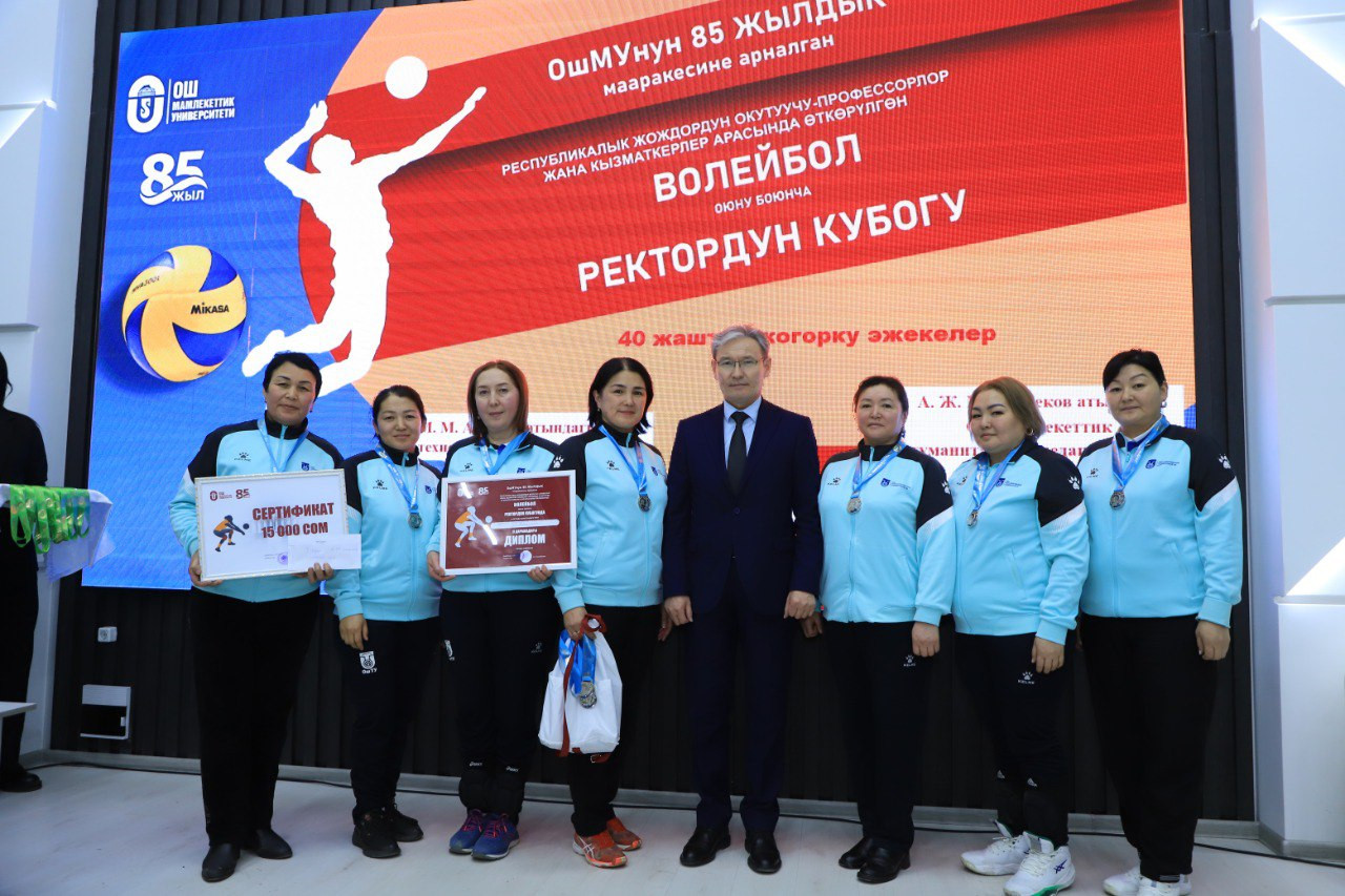 Подведены итоги турнира по болейболу среди преподавателей и сотрудников вузов страны, посвященного 85-летию ОшГУ. Следует отметить , что по всем возрастным категориям команды ОшГУ заняли первые места.