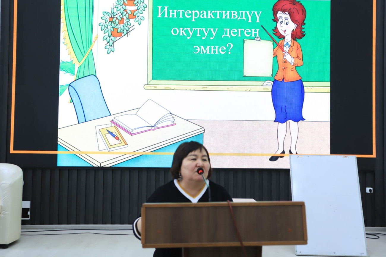 В институте математики, физики, техники и информационных технологий ОшГУ состоялась гостевая лекция заведующей кабинетом центра повышения квалификации и переподготовки педагогических кадров Нарынского госуниверситета, кандидата педагогических наук, профессора Российской академии естествознания Бурулбубу Биймурсаевой на тему “Интерактивные методы в преподавании математики".