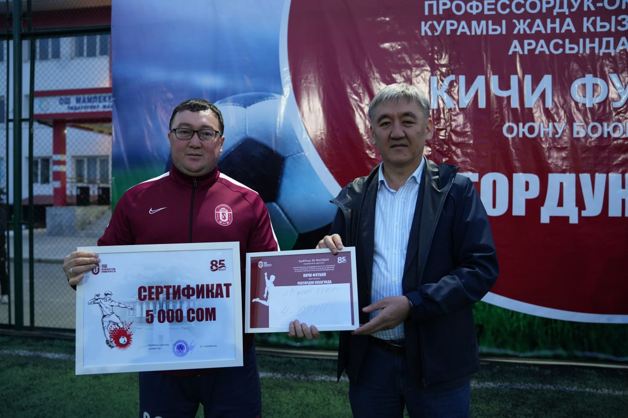 В результате соревнований в категории старше 40 лет 1 место завоевала команда ОшГУ, 2 место - команда Кыргызско-Узбекского международного университета, 3 место - футболисты ОшТУ. В категории до 40 лет 1 место заняла команда ОшГУ, 2 место - футболисты ЖАГУ, 3 место - команда института математики, физики, техники и информационных технологий ОшГУ. Победители и призеры турнира удостоились кубка ректора, дипломов и денежных призов.