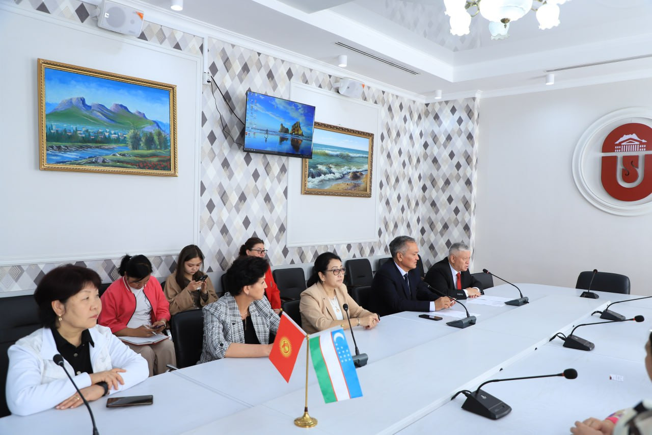 В ОшГУ прибыла делегация преподавателей и студентов университета экономики и педагогики Узбекистана во главе с проректором университета Бохадиржоном Муйдиновым.