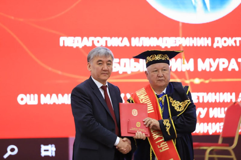 В ОшГУ состоялась церемония присвоения почетного звания "Почетный профессор ОшГУ"известному выпускнику ОшГУ, доктору педагогических наук, профессору Кыргызского государственного университета имени Арабаева, педагогу, писателю, журналисту и публицисту Абдыкериму Муратову.
